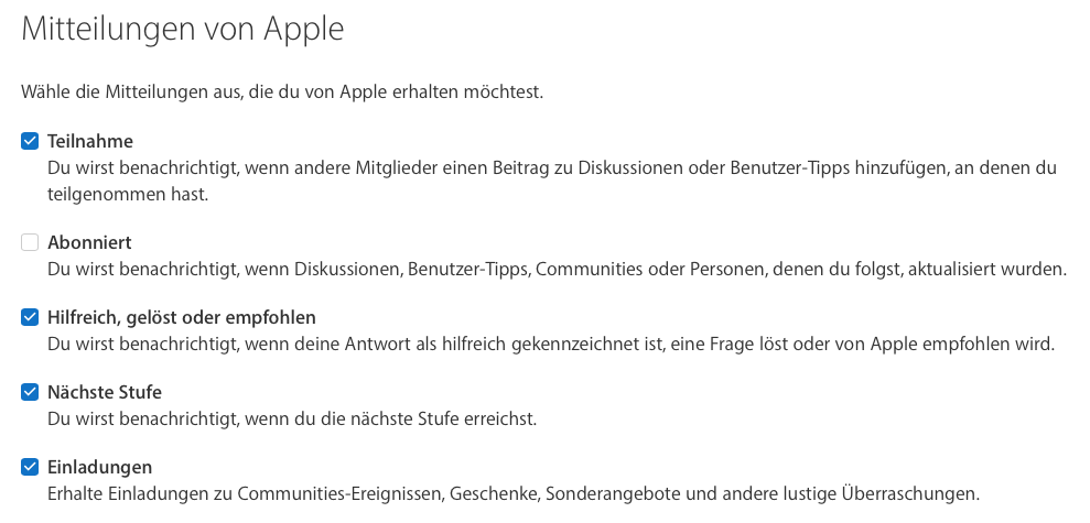 Ist es möglich, sich von Fragen/Unterhaltungen zu deabonnieren? Kann man per Email eine Wochenzusammenfassung der Apple-Communities erhalten, wenn man viele Fragen bearbeitet/beantwortet?