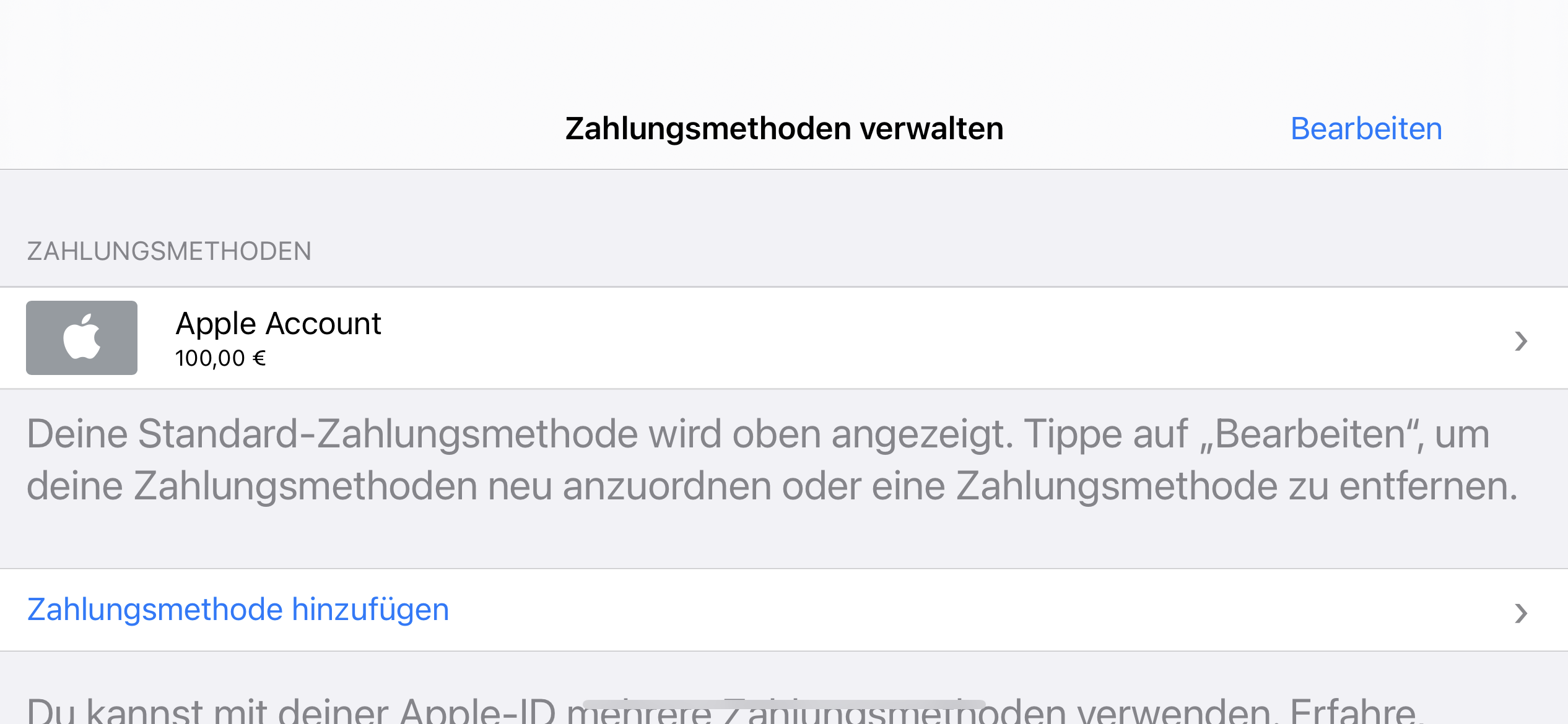 - Einstellungen -> Name (Apple-ID, iCloud, Medien und Käufe) -> Zahlung und Versand -> Rechnungsadresse