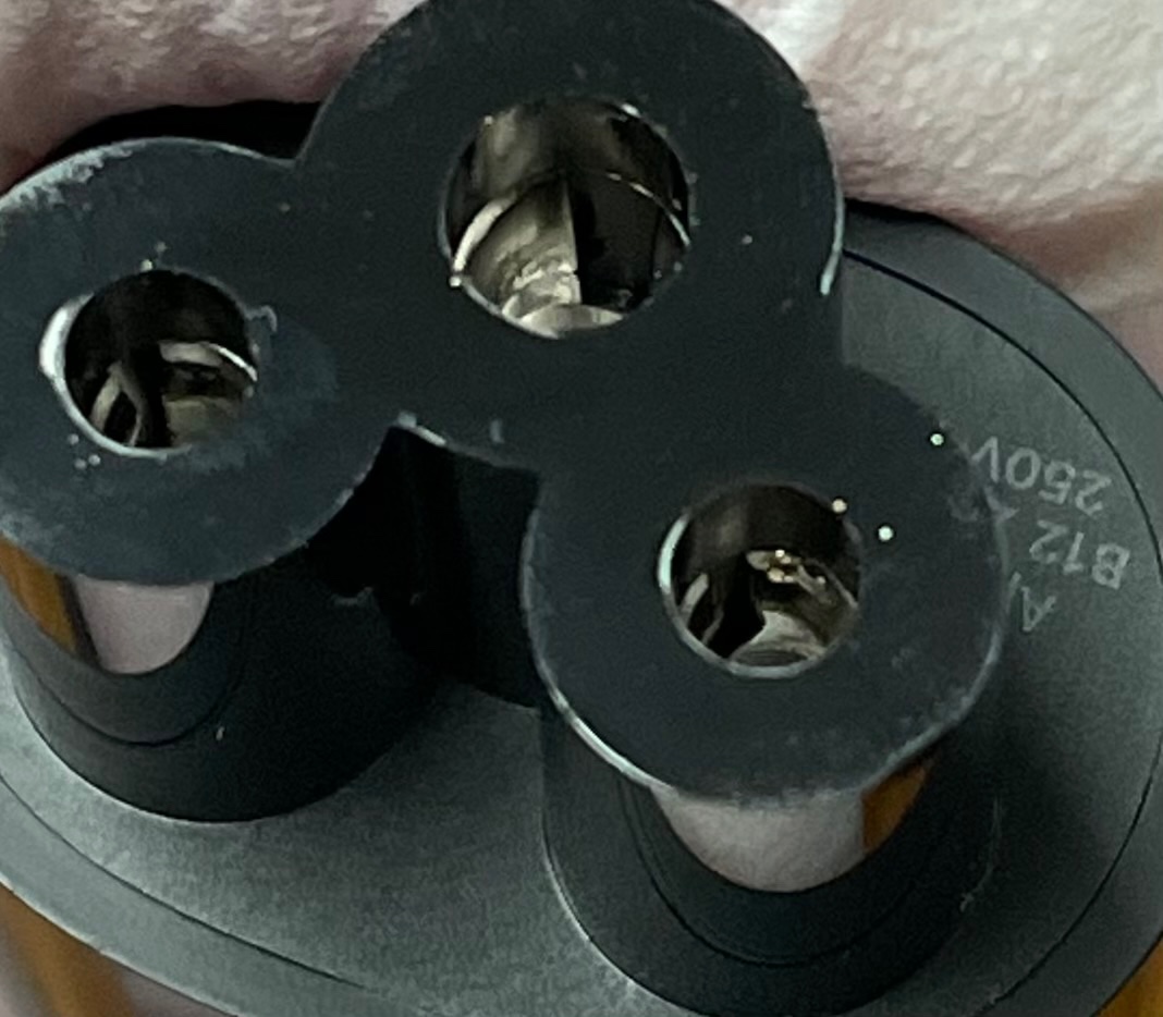 Ich habe mir danach den Stecker und die Buchse angeschaut und habe jeweils eine kleine Beschädigung am Metall festgestellt. Siehe Bilder unten.
