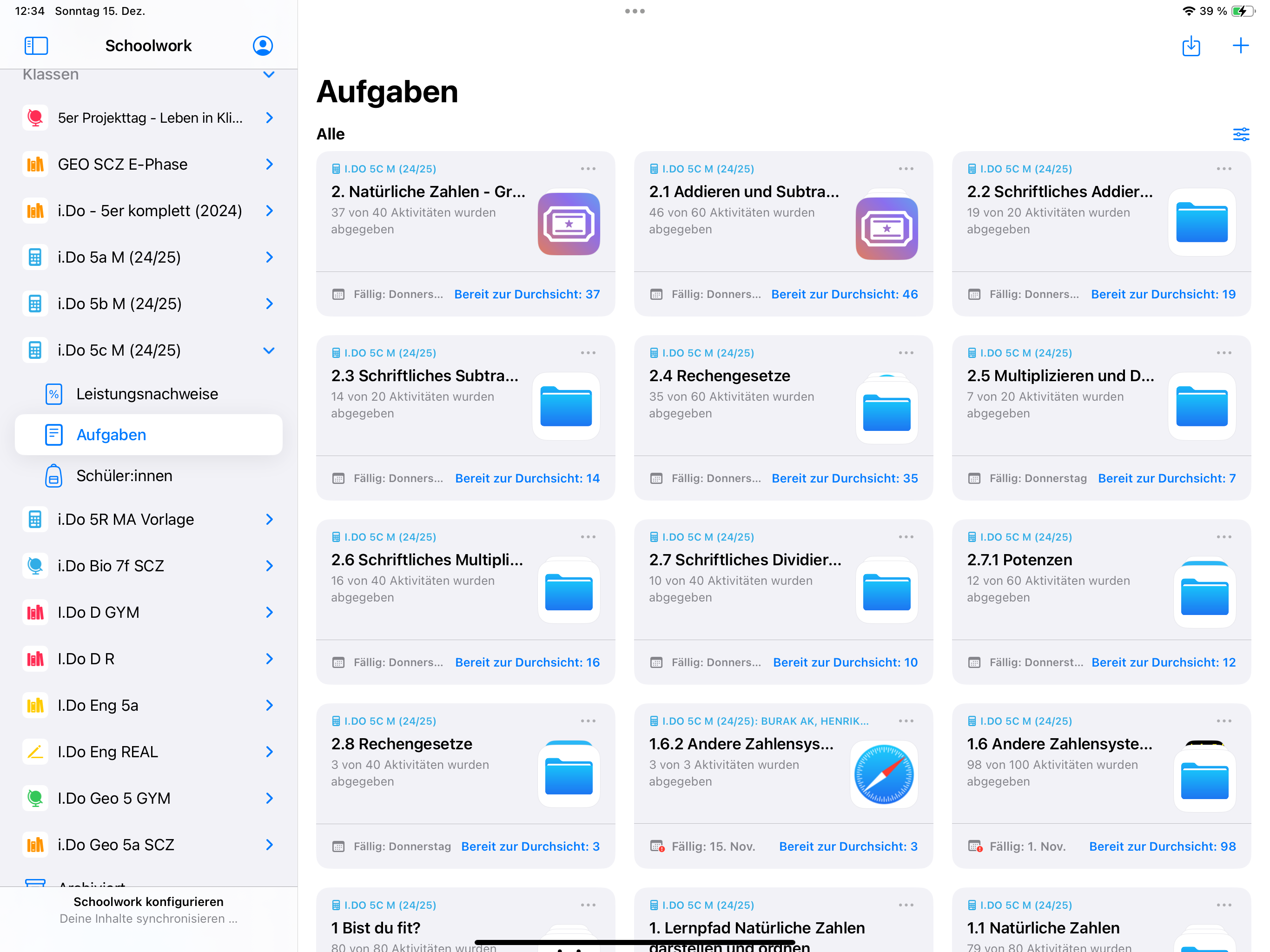 Hallo zusammen, wir finden die Idee von Schoolwork genial und setzen Sie im Zusammenhang mit unserem neuen Konzept zum individualisierten Lernen nun im ersten Jahrgang ein. Wie wollen das den Einsatz Jahr für Jahr erweitern. Nun kommt es leider immer wieder zu Synchronisationsfehlern der iCloud. Somit erhalten Schüler ihre Aufgaben nicht zum geplanten Zeitpunkt oder garnicht. Ebenfalls wird die direkte Rückmeldung und Bearbeitung durch die Lernbegleiter dadurch eingeschränkt. Der Sychronisationsvorgang bei Lehrergeräten hört quasi niemals auf. Lösung ist bisher jedes Mal ein lästiger kompletter Ab- und Anmeldevorgang, welcher unnötig Zeit frist. Es steht folgende Meldung unten links : "Deine Inhalte sychronisieren" in Dauerschleife, ohne dass es jemals abgeschlossen wird. Auch noch Stunden ONLINE (Siehe Fotos)