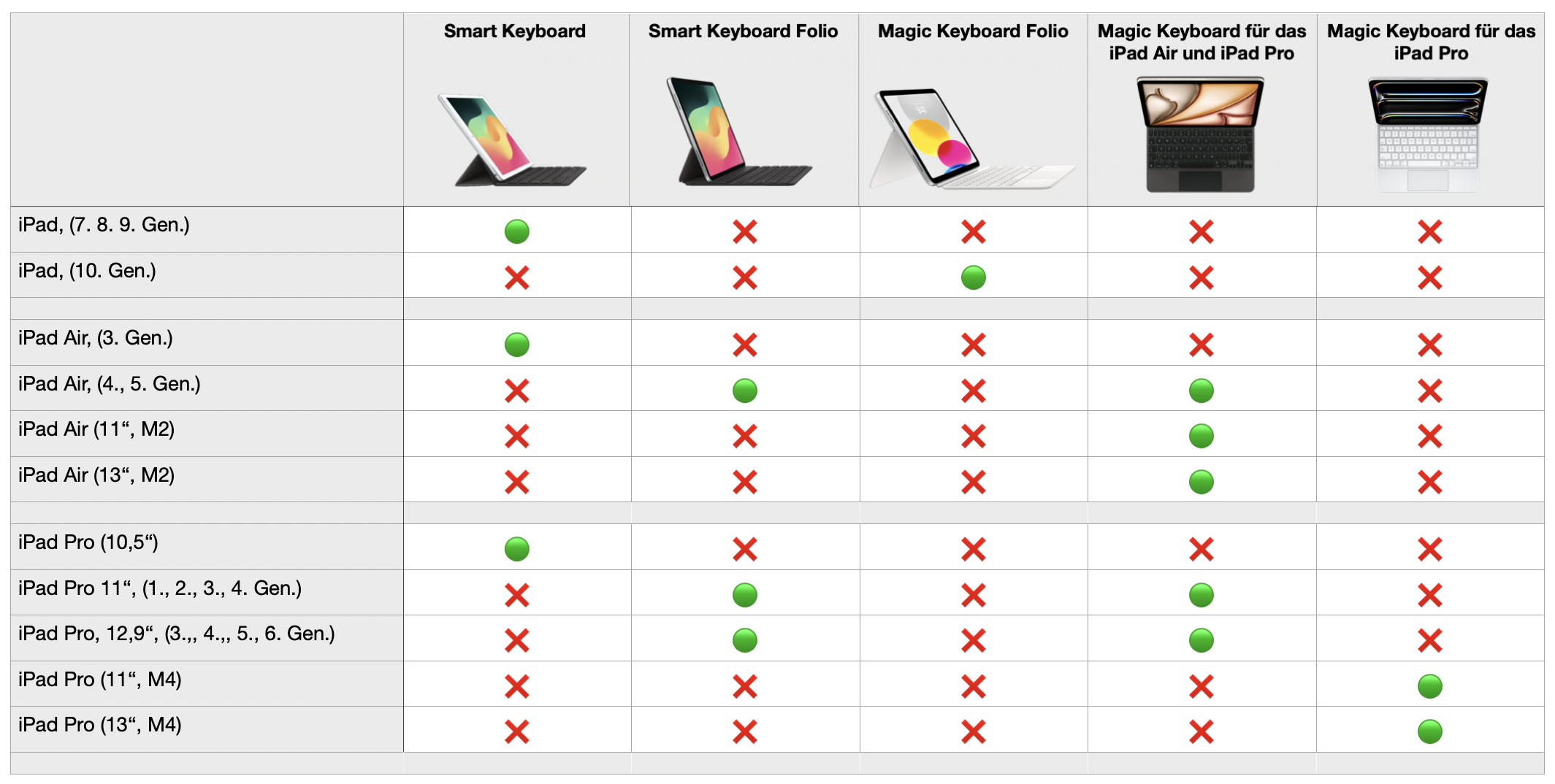 Dort kannst du dich darüber informieren, welches Keyboard mit welchem iPad kompatibel ist.