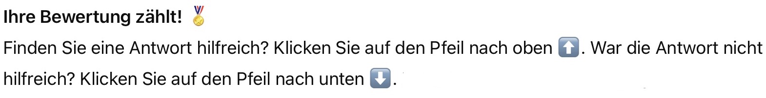 Dieser Thread wurde vom System oder dem Community-Team geschlossen. Du kannst alle Beiträge positiv bewerten, die du hilfreich findest, oder in der Community nach weiteren Antworten suchen.