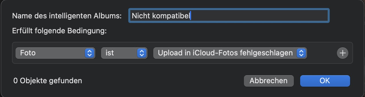 Eine ganze Reihe Tretminen in meiner iCloud Fotos Mediathek habe ich auch mit diesem intelligenten Album identifiziert: