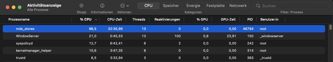 Was ist der Prozess mds_stores und kann ich diesen dauerhaft beenden?