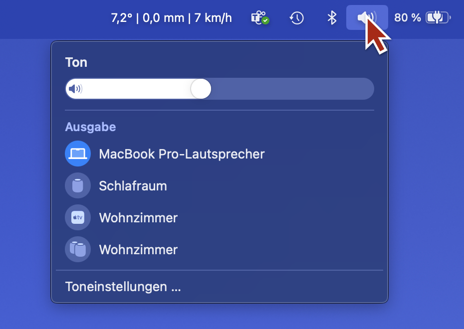 Hallo Karchevskyi, wenn die Audiowiedergabe über deinen Kopfhörer funktioniert, klicke bitte mal in der Menüleiste deines Macs auf das Lautsprecher-Symbol.