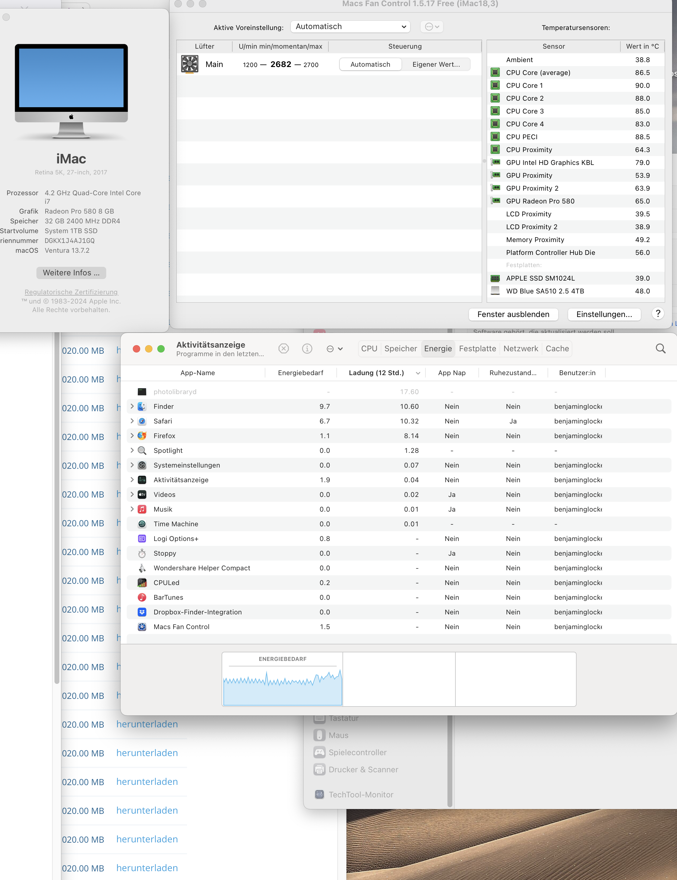 Lüfter von iMac 2017 Retina 5K läuft ständig auf maximaler Drehzahl