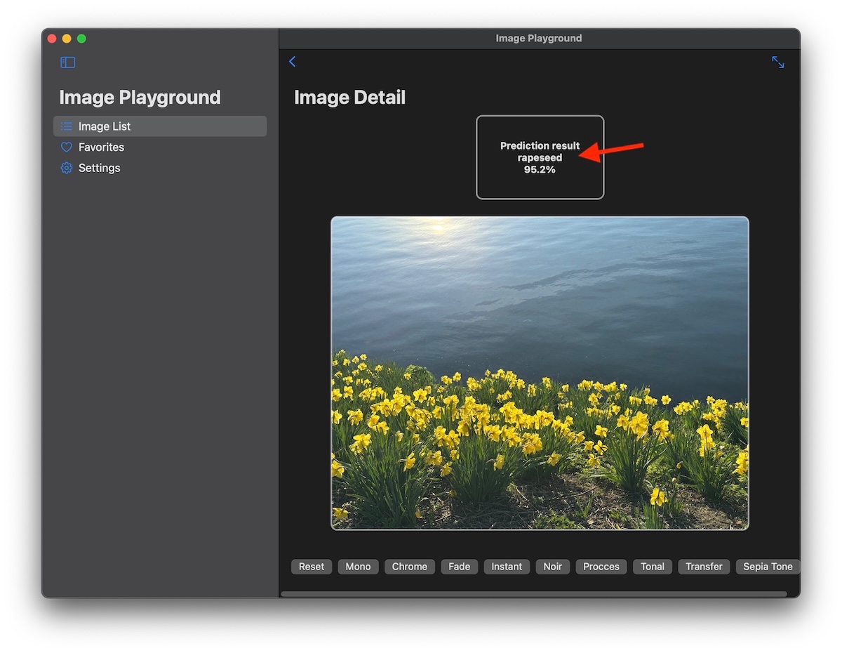 Bisher kann ich nur Bilder einlesen, um Effekte hinzuzufügen und das Bild analysieren zu lassen. Hier ist ein Testbild - der Image Playground sagt, es seien Rapssamen. Ich muß wohl meine Botanikkenntnisse auffrischen. 😁