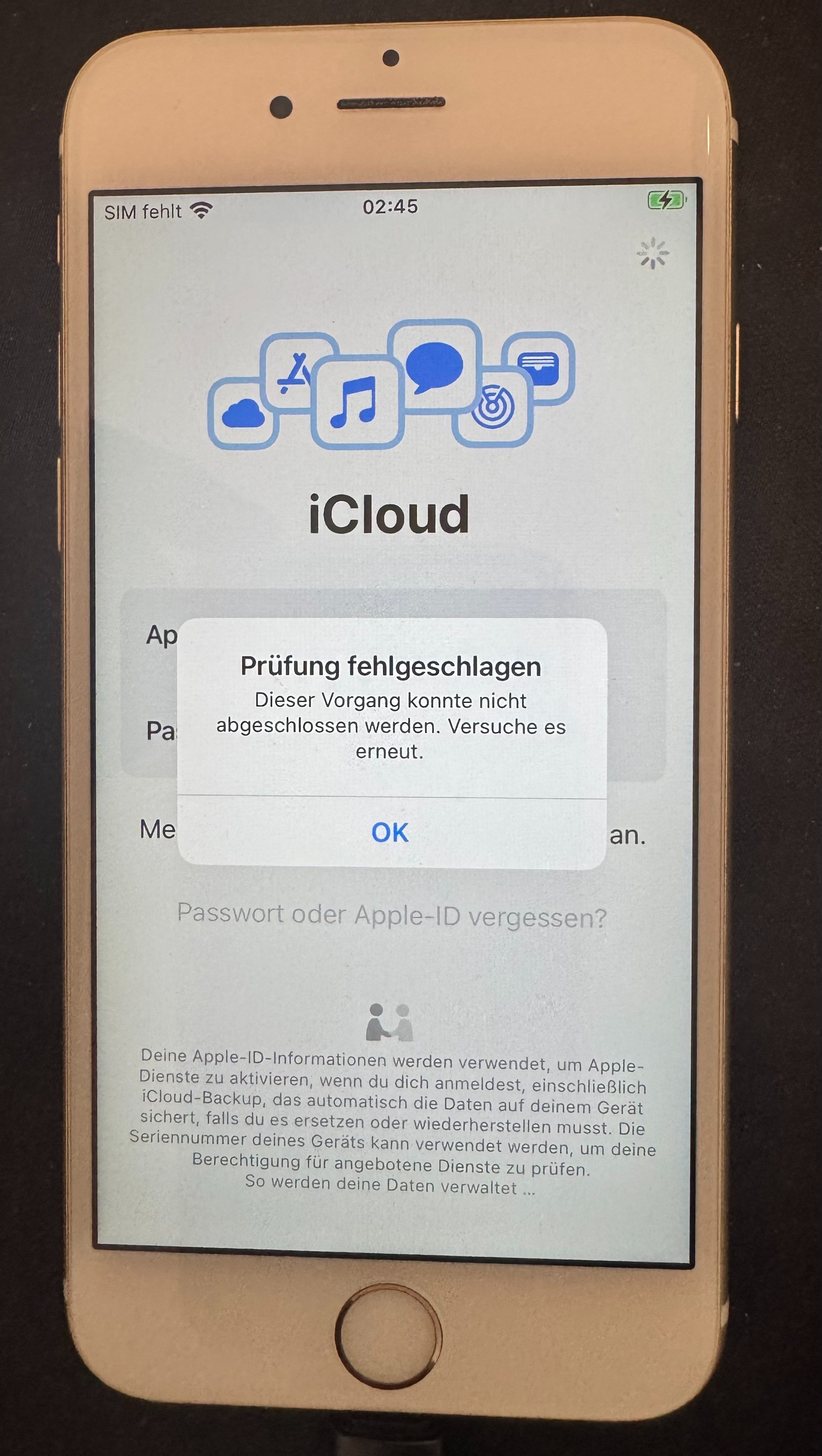 iCloud Restore Prüfung auf iPhone 6s iOS 15.8.4 fehlgeschlagen