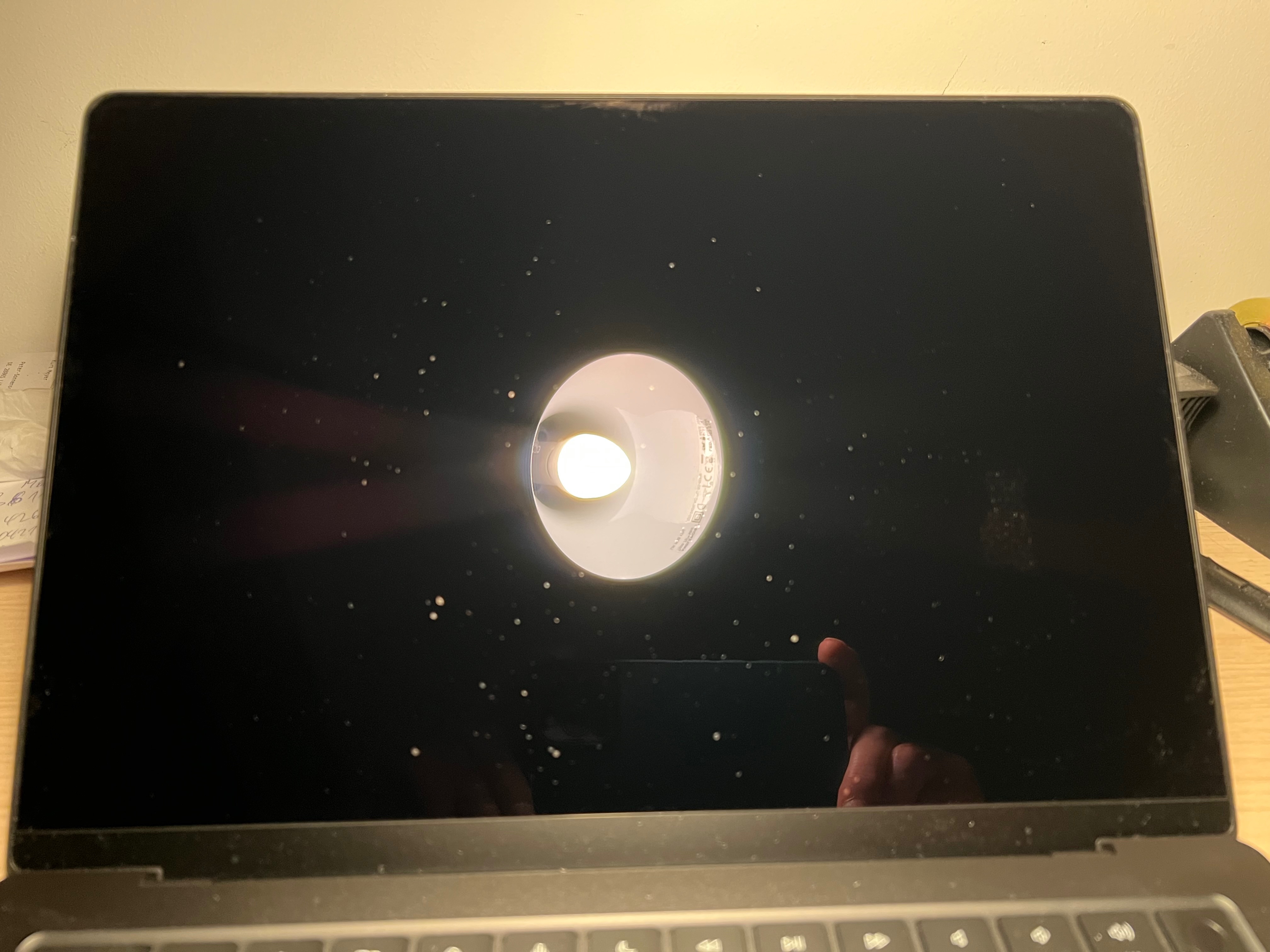 die Lampe beleuchtet das Display und ich ging von Schmutz o.ä. aus, klar begrenzt, lassen sich nicht entfernen.