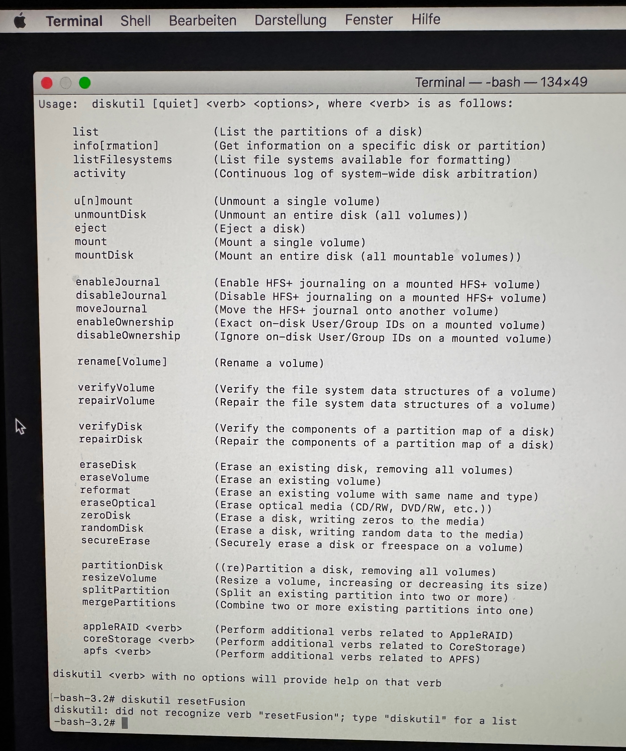 3. Gib diskutil resetFusion in das Terminal-Fenster ein, und drücke die Eingabetaste.