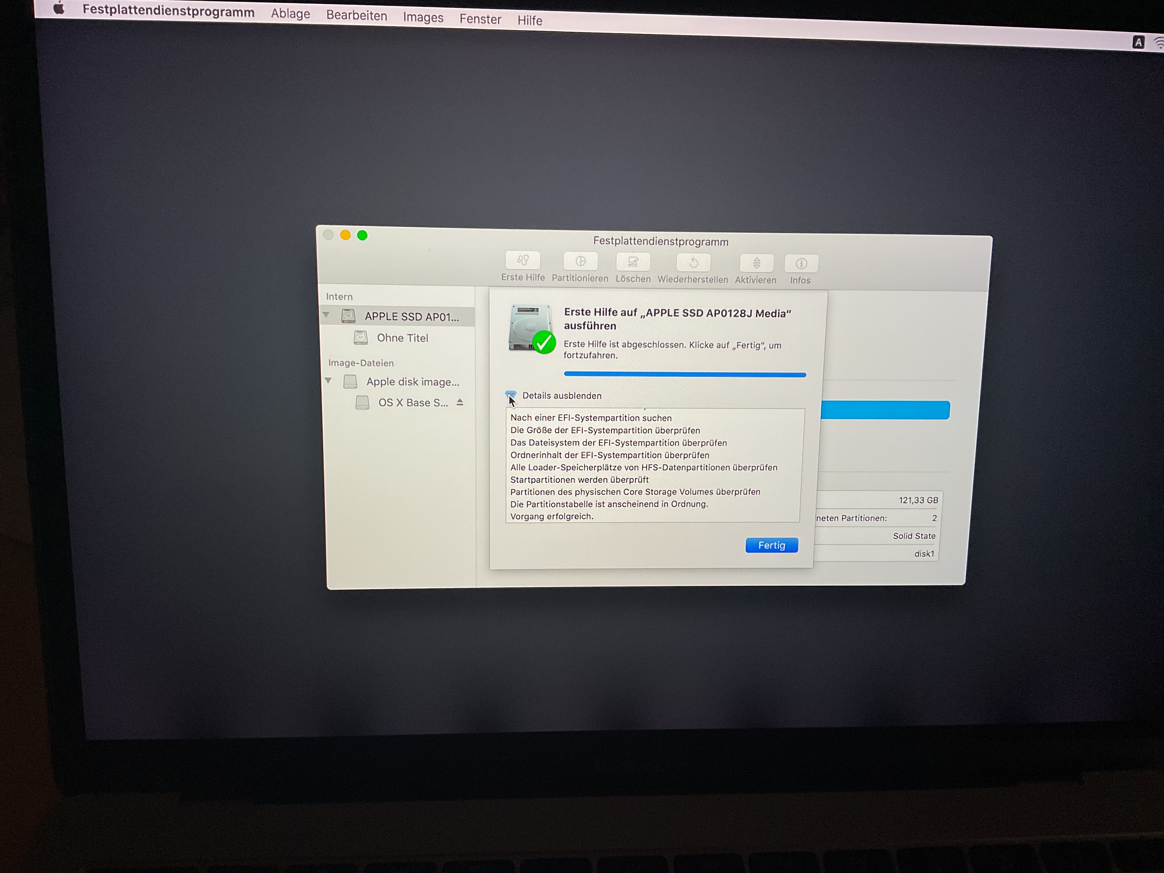 MacOS Sierra erneut installieren scheitert Fehlercode Festplatte Exit 8