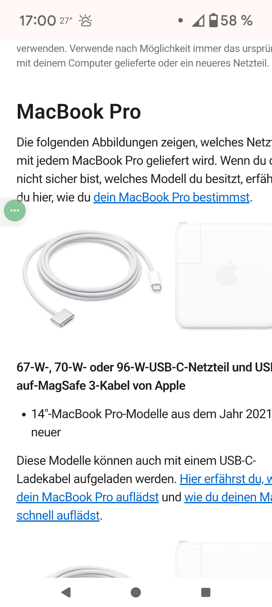 und ein Netzteil anschließen möchtest, verwende das 96W USB-C-Netzteil