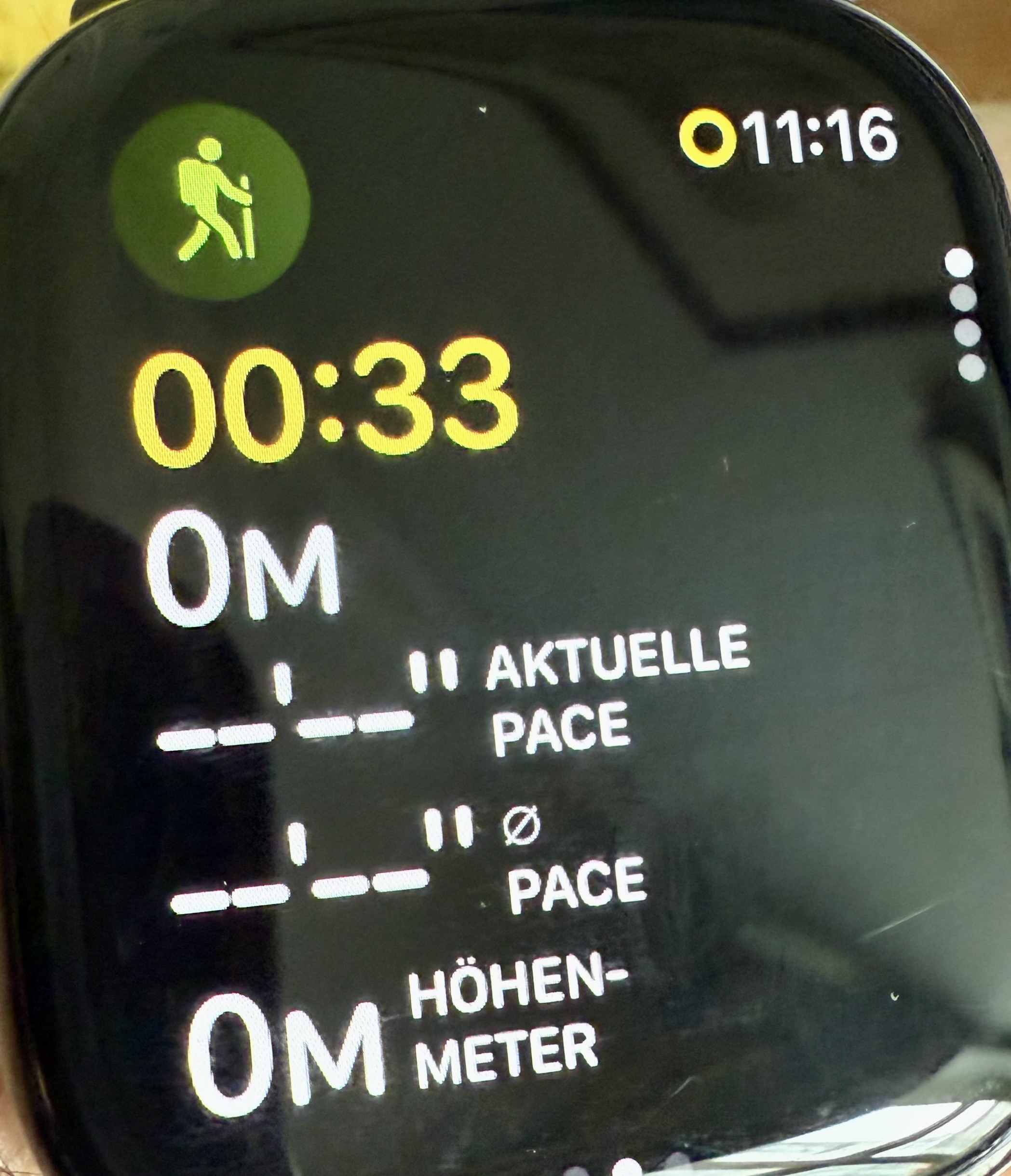 Trainingsanzeige Wandern und Laufen - oberste Anzeige in gelb