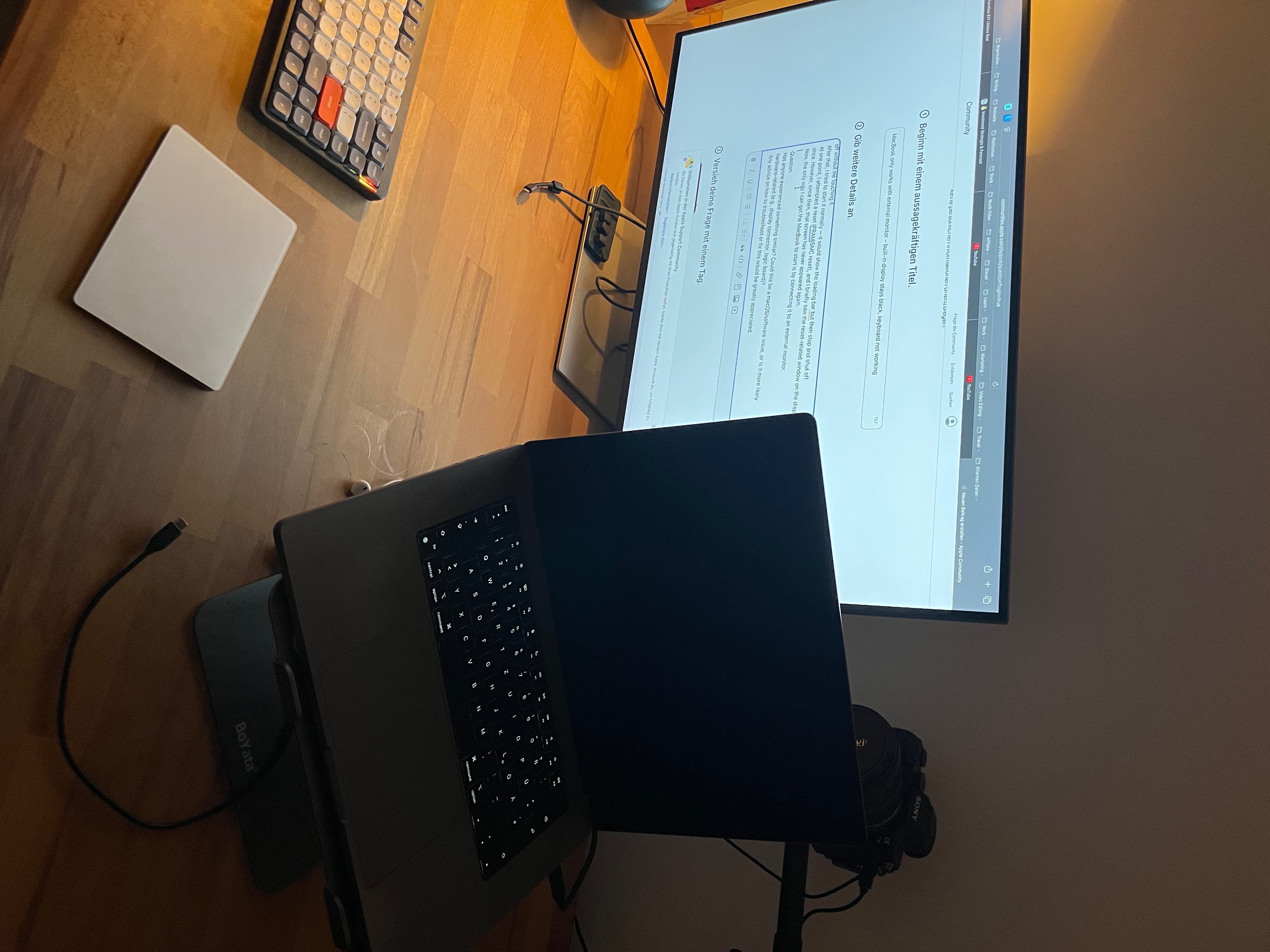 MacBook funktioniert nur mit externem Monitor – internes Display bleibt schwarz, Tastatur reagiert nicht