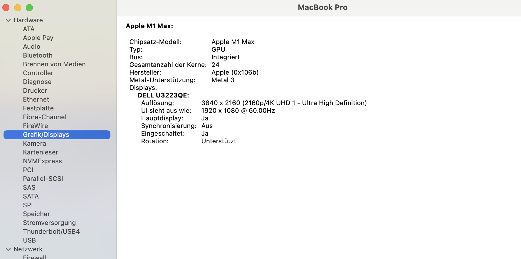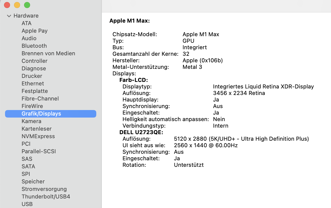 Gerät: MacBook Pro 16" (2021, Apple M1 Max, 32 GB, 1 TB), macOS Sequoia 15.6