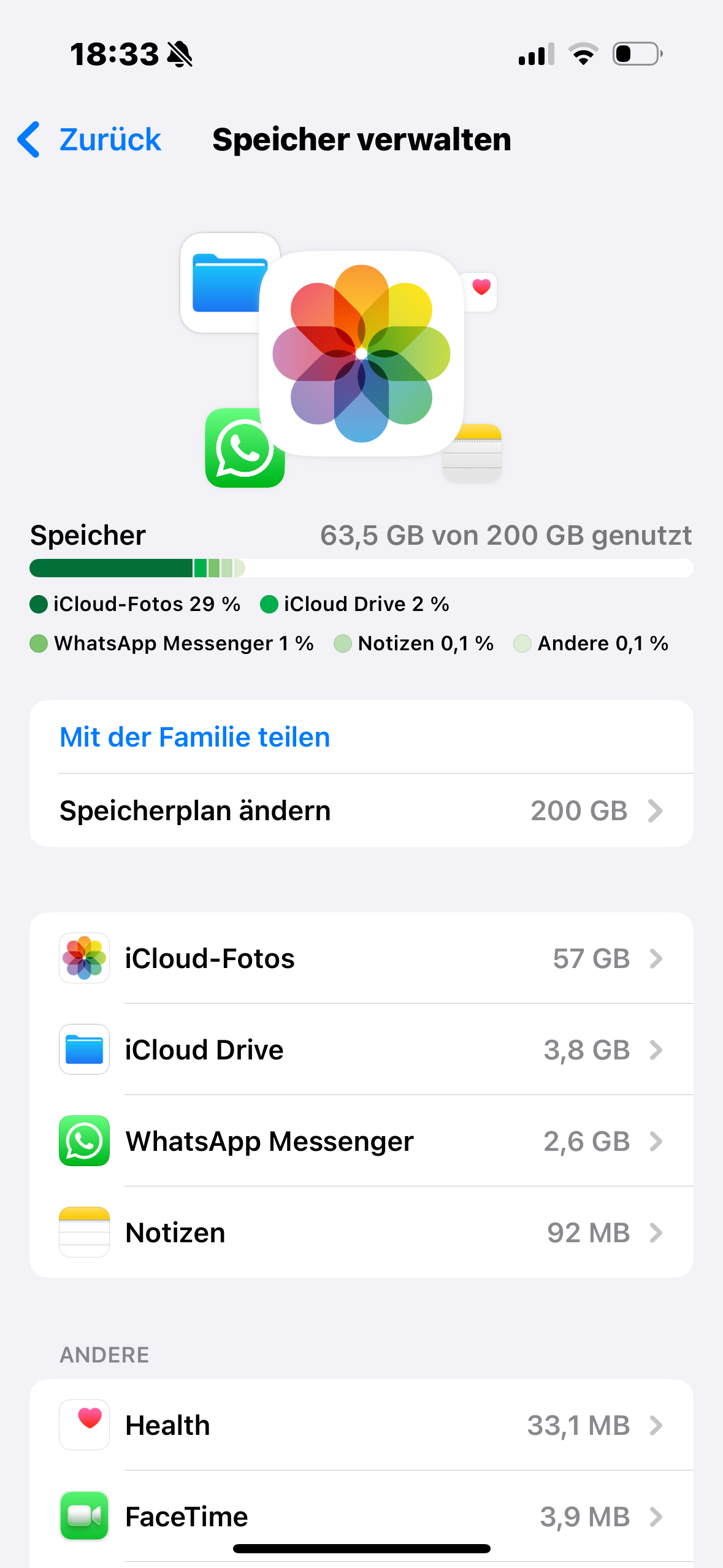 Gleichzeitig habe ich aber in iCloud noch jede Menge freien Speicherplatz.