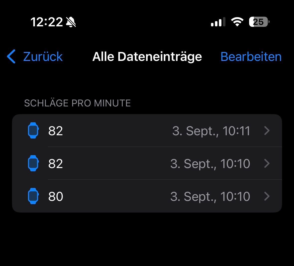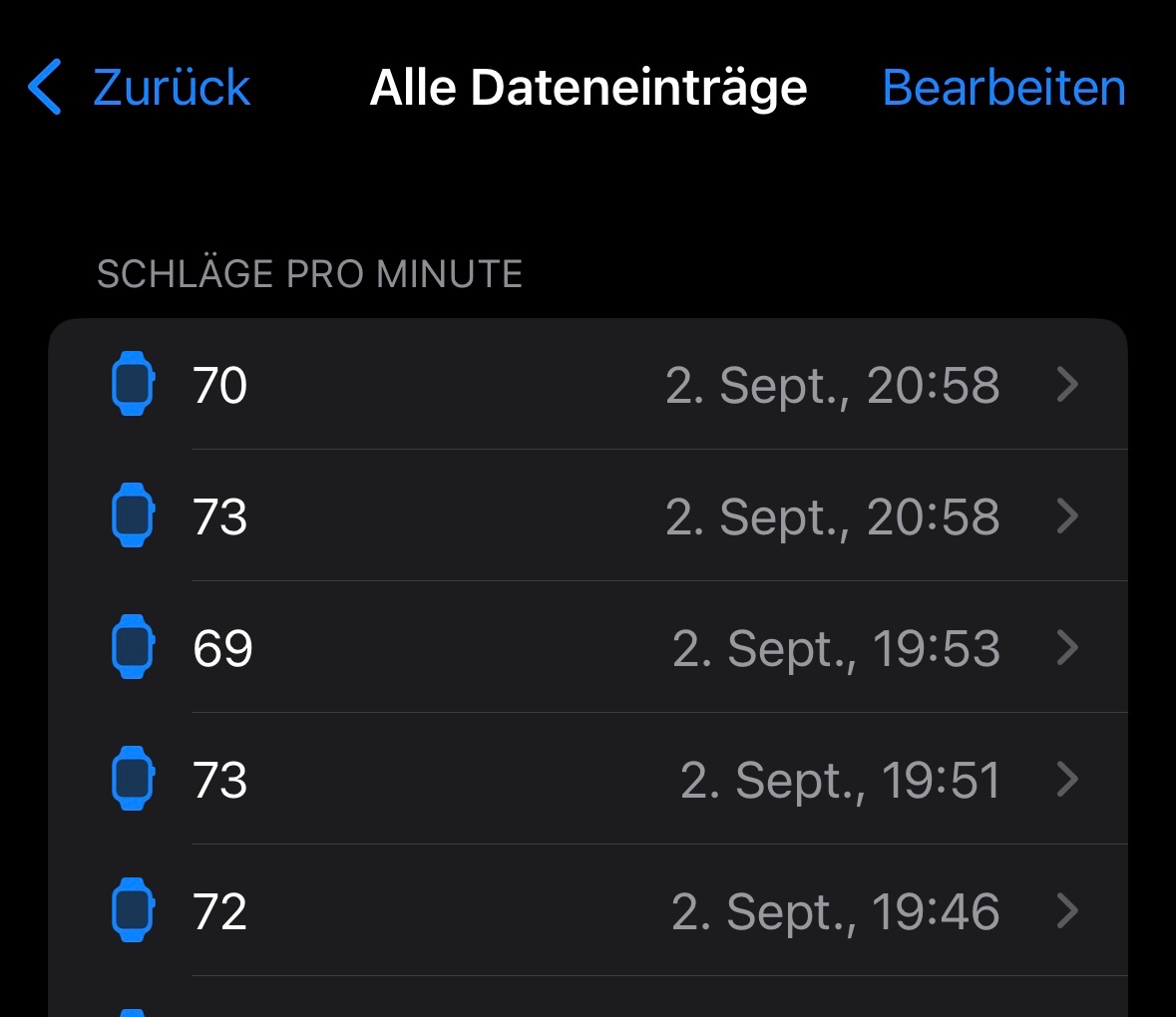 Wenn du die Trainings-App verwendest, misst die Apple Watch deine Herzfrequenz kontinuierlich während des Trainings sowie drei Minuten lang nach dessen Ende, um auch die Erholungsherzfrequenz nach dem Training zu ermitteln. Wenn deine Herzfrequenz nicht angezeigt wird, überprüfe die Einstellungen.
