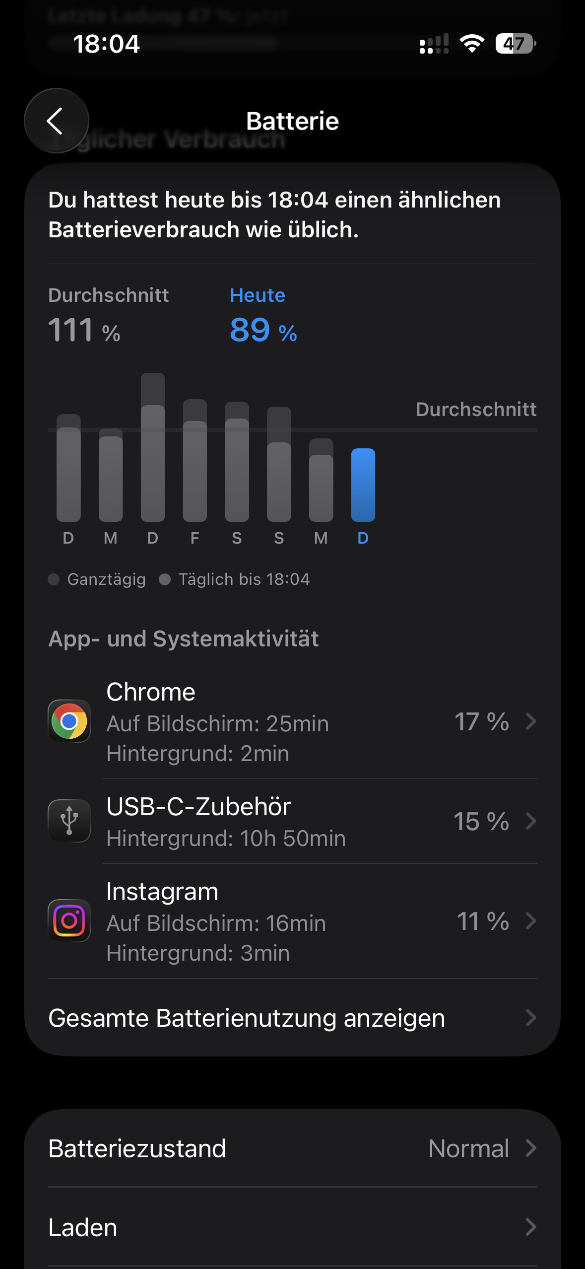 mein IPhone 15 pro zeigt seit einiger Zeit an das USB-C Zubehör Strom verbraucht, es steckt aber nichts drin.