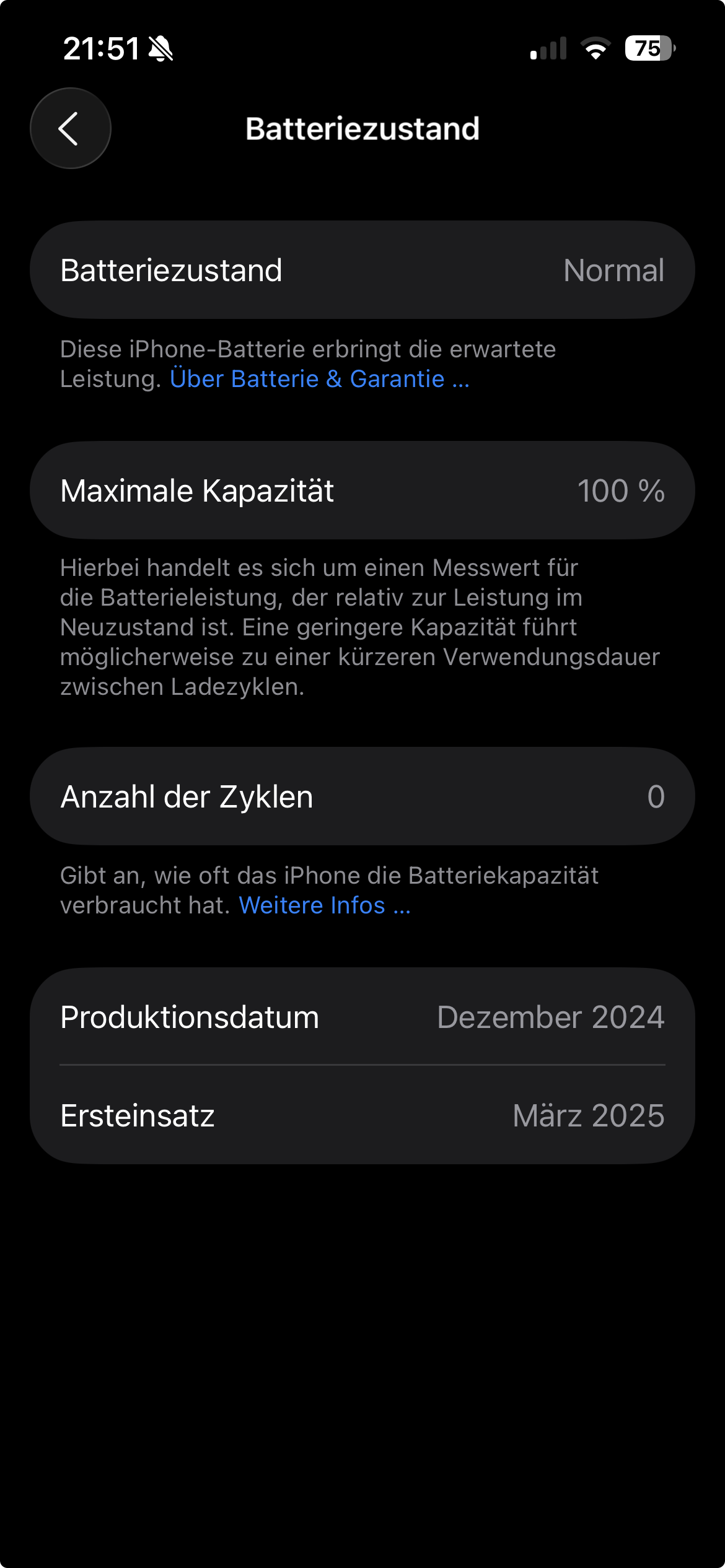 Jetzt habe ich jedoch unter „Batteriezustand“ gesehen, dass bei „Ersteinsatz“ März 2025 steht.