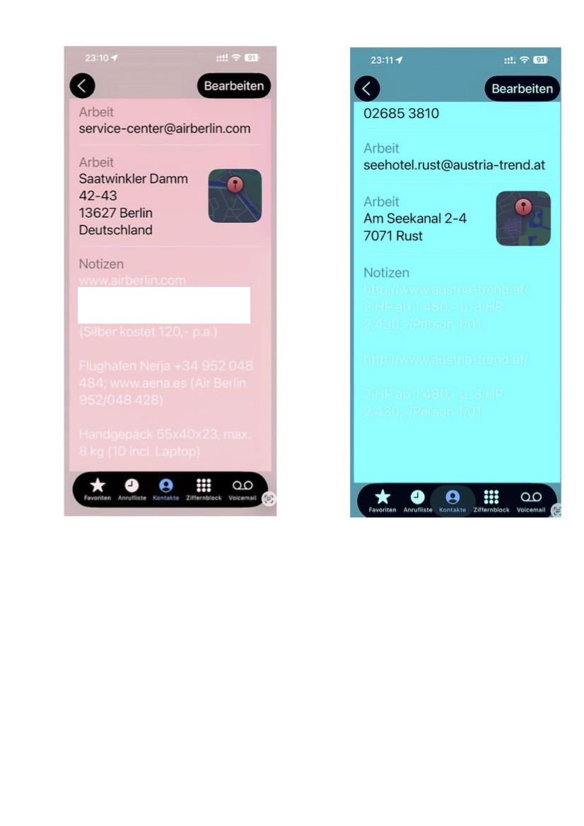 Bin echt verzweifelt. Befinde mich mit meinem neuen iPhone 17 auf Urlaub und kann den Text von Kontakten nicht lesen, weil er zu hell ist. Das Problem ist, dass die einzelnen Kontakte mit jetzt hellen Farbtönen unterlegt sind und die Notizen von schwarz auf weiß wechseln, wobei Textänderungen nicht möglich sind.