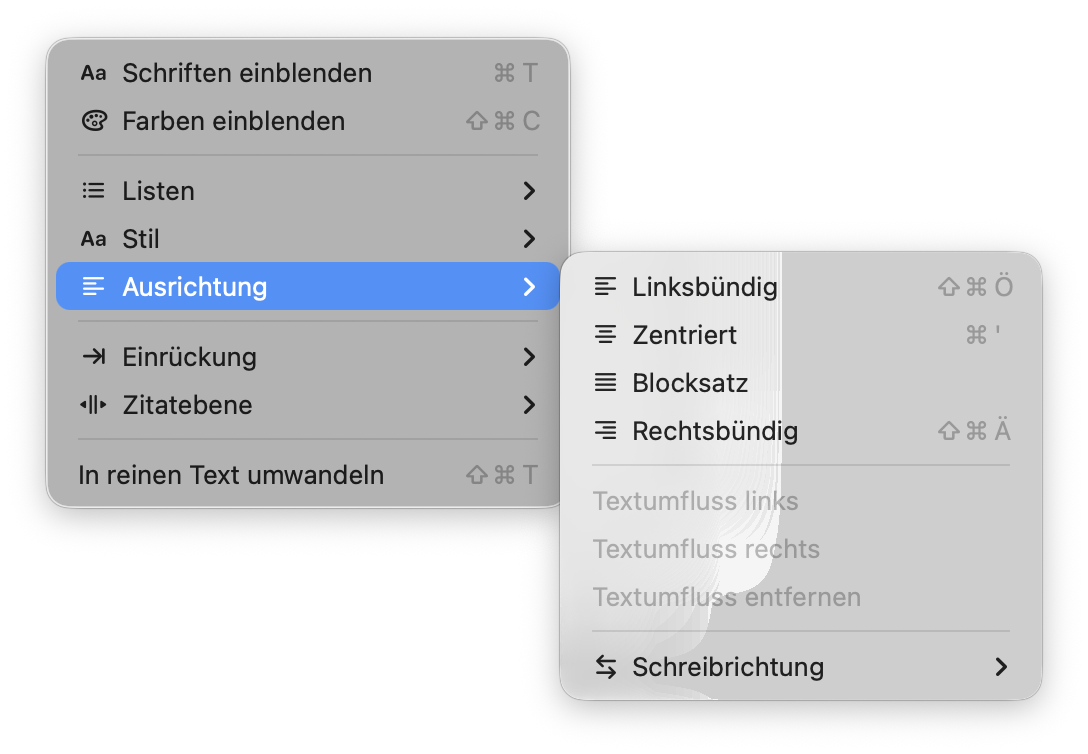 Ich kann im Text der Mail leider nicht den Tastaturkurzbefehl für "Zitatebene erhöhen" verwenden. Der lautet "⌘+´" und ist der selbe Text wie bei "Format - Zentriert".