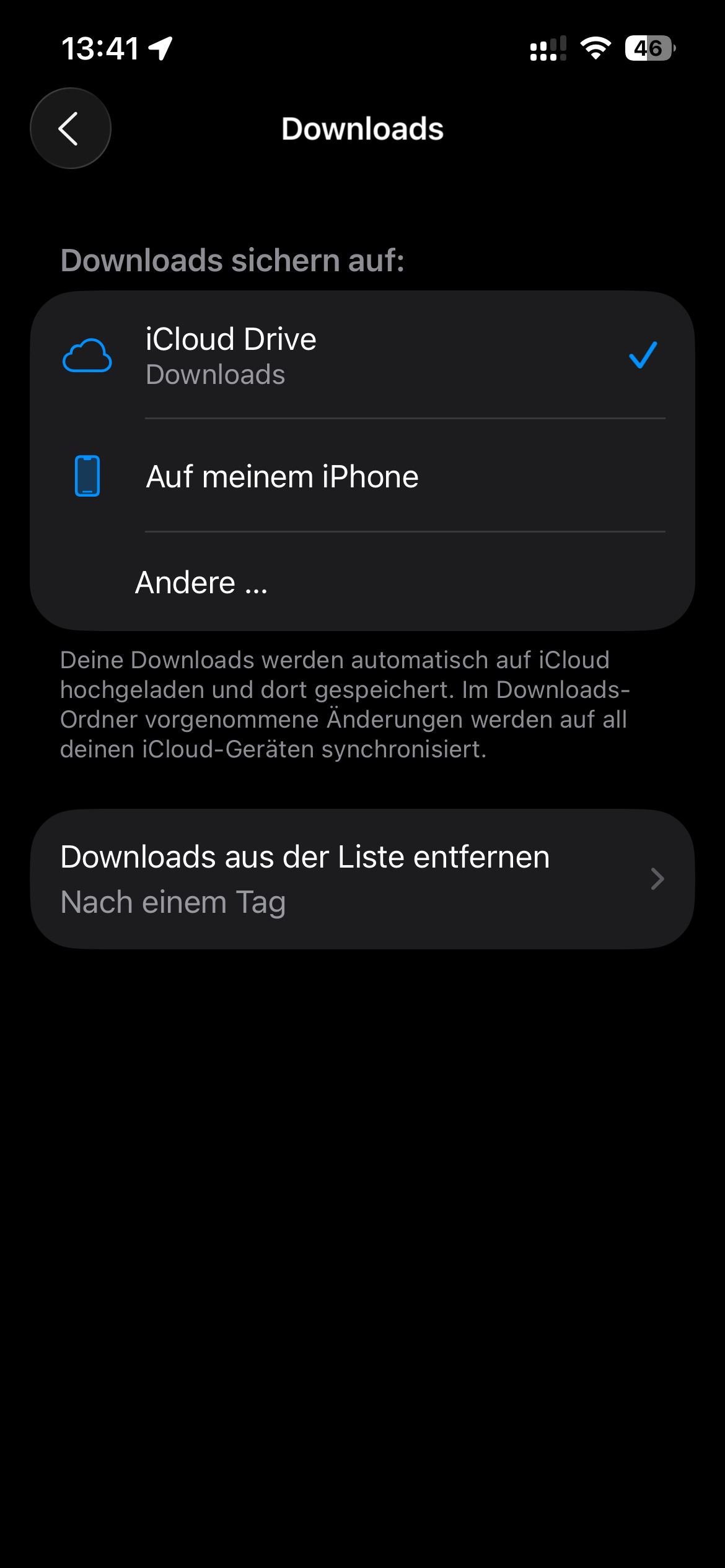 Unter Einstellung -> Apps -> Safari -> Downloads habe ich ich bei "Downloads sichern auf:" den Download-Ordner der iCloud angegeben. Leider werden die Downloads dort aber nicht mehr gespeichert. Ich habe auch andere Ordner in der iCloud und auch auf dem iPhone ausprobiert, nie wird der Download dort abgelegt.