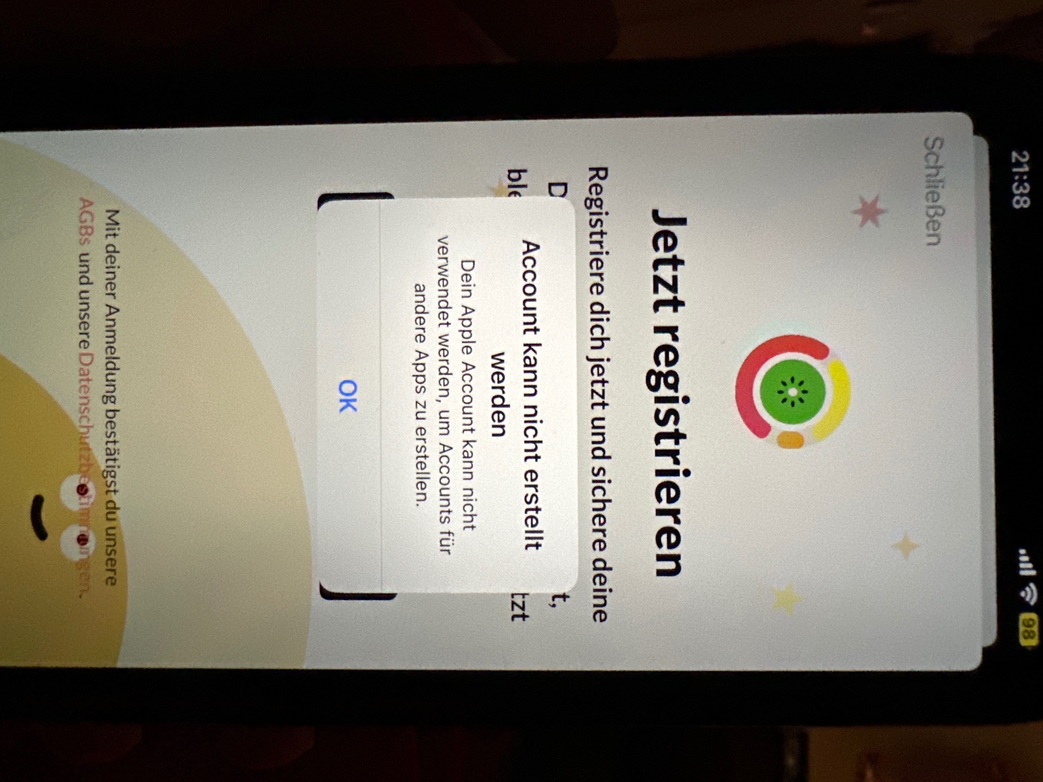 Leider kommt die Meldung „Account kann nicht erstellt werden“ „Dein Apple Account kann nicht verwendet werden, um Accounts für andere Apps zu erstellen“