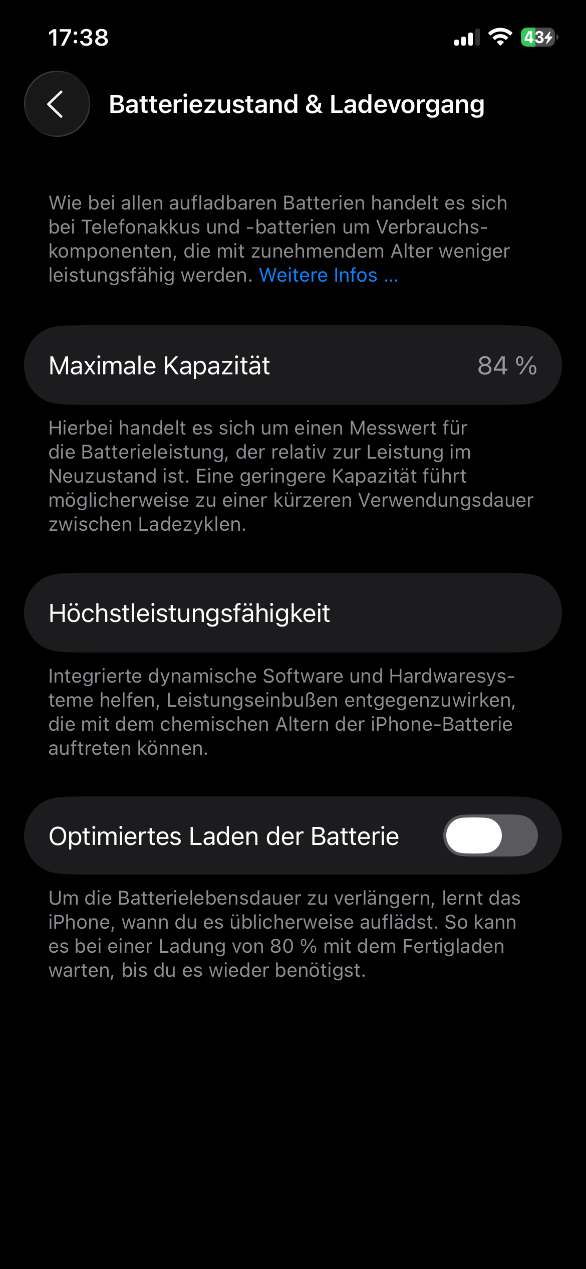 Wie gut sind 84/87% Akkugesundheit nach 1511 Ladezyklen?