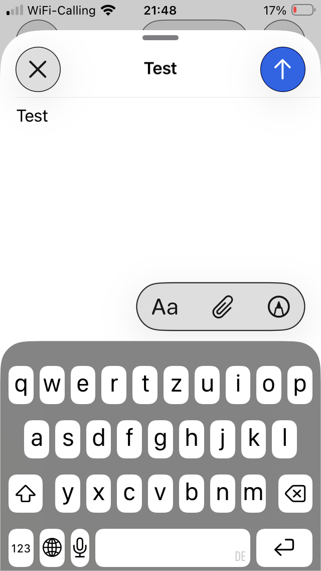 In der E-Mail App wird beim Ändern der Schriftgrösse das Text-Eingabefeld abgedeckt