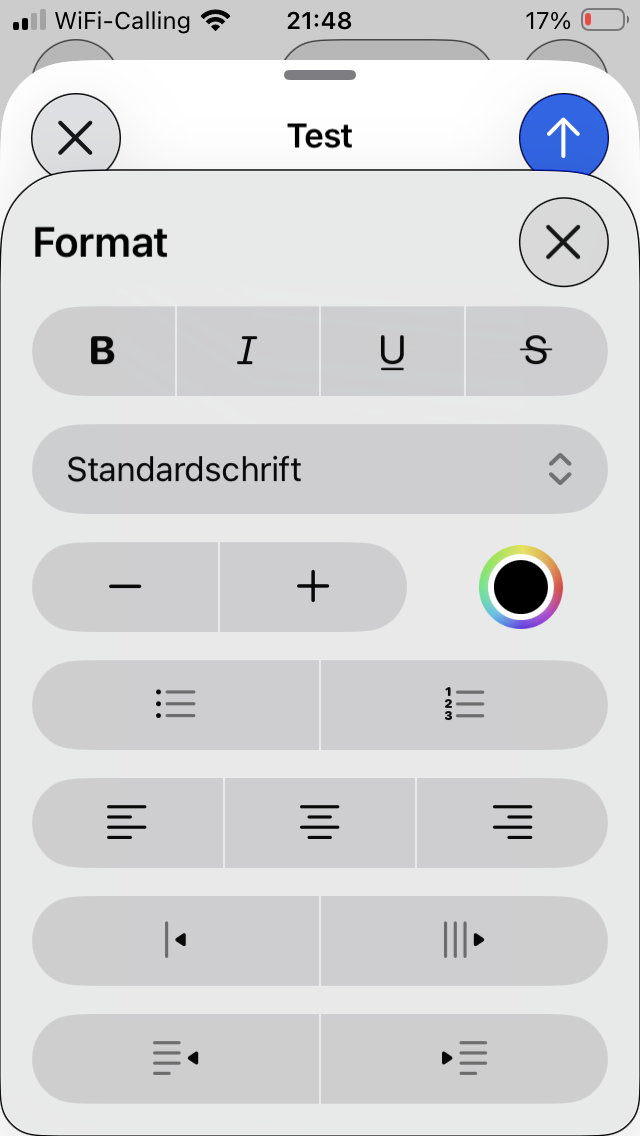 In der E-Mail App wird beim Ändern der Schriftgrösse das Text-Eingabefeld abgedeckt, d.h ich sehe die Grössenänderung nicht live!
