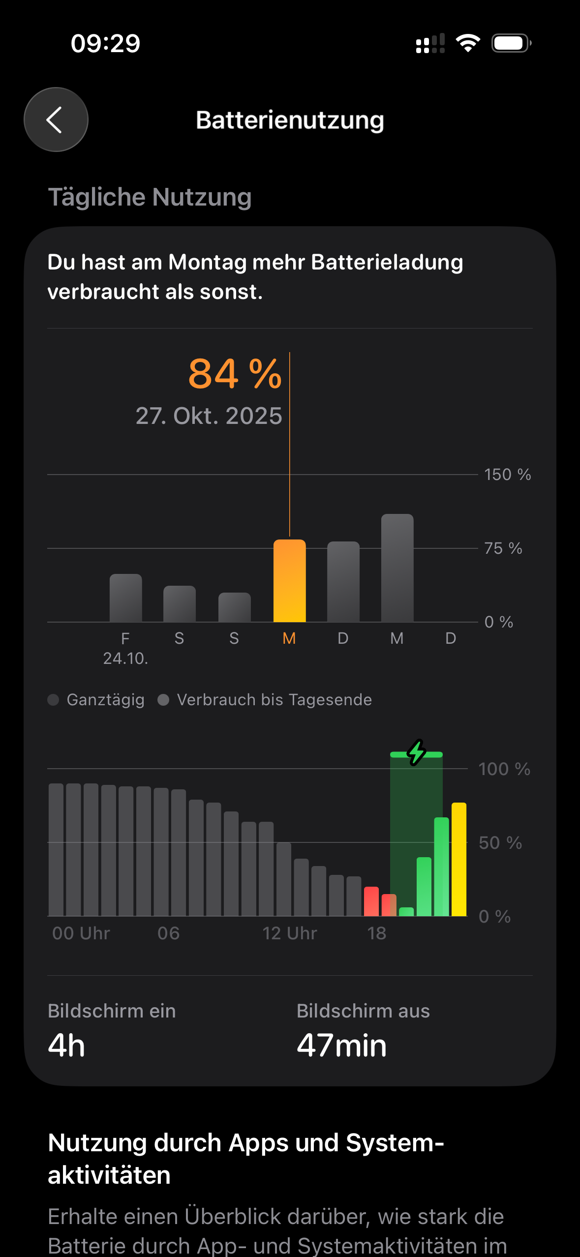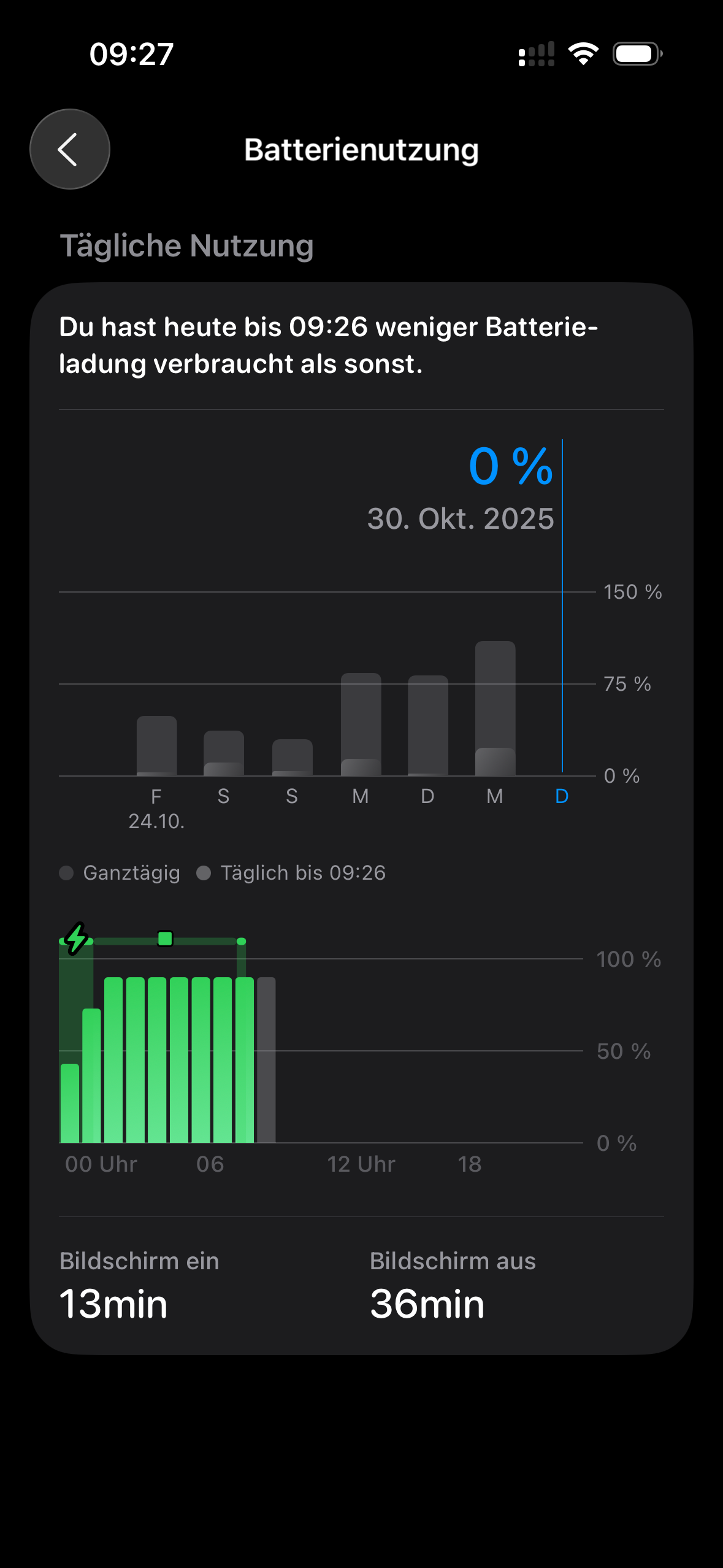 Einstellungen>Batterie>Gesamte Batterienutzung anzeigen
