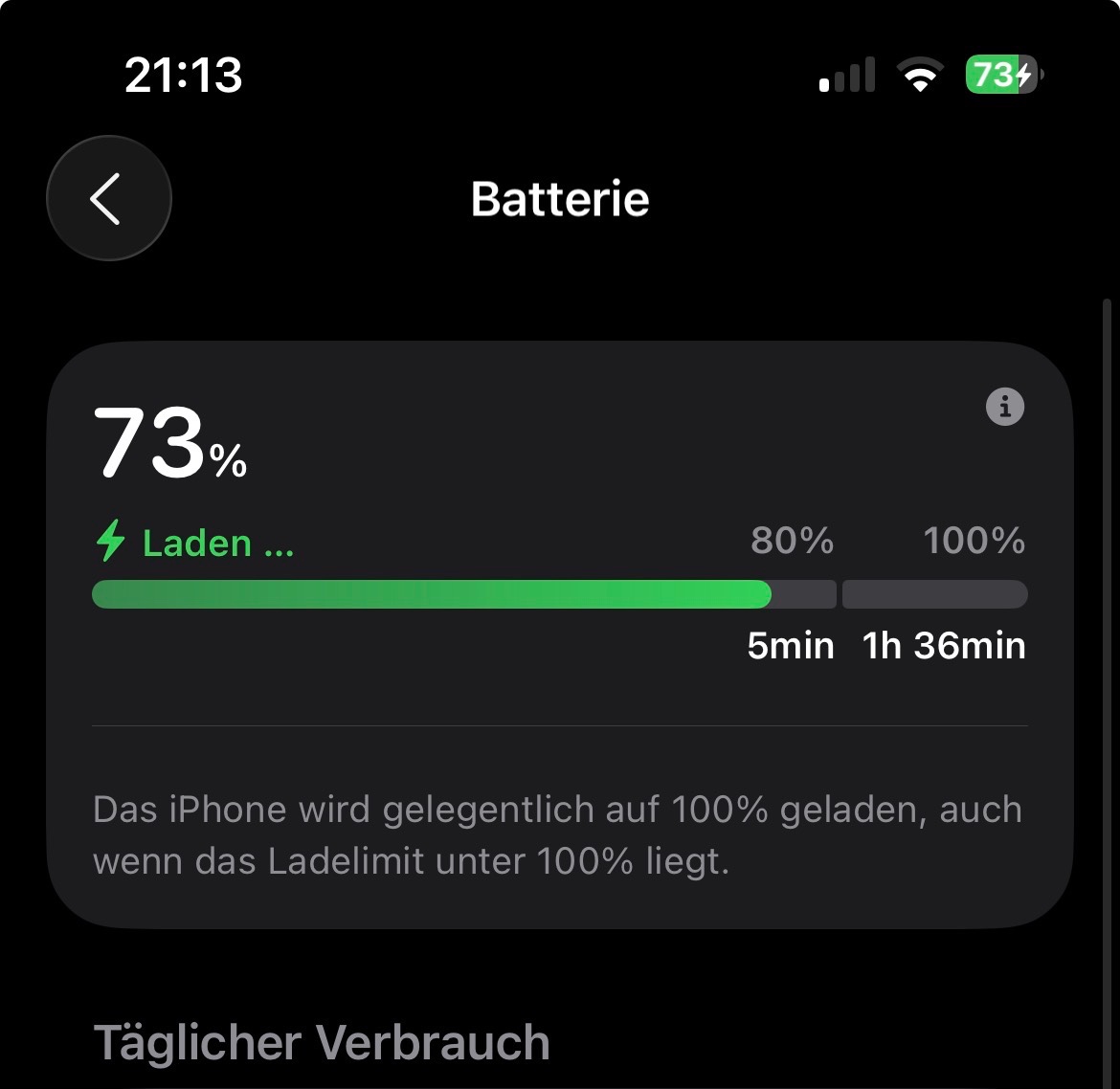 Seit ich das neue iOS 26 Update gemacht habe, lädt mein iPhone bis maximal 73%