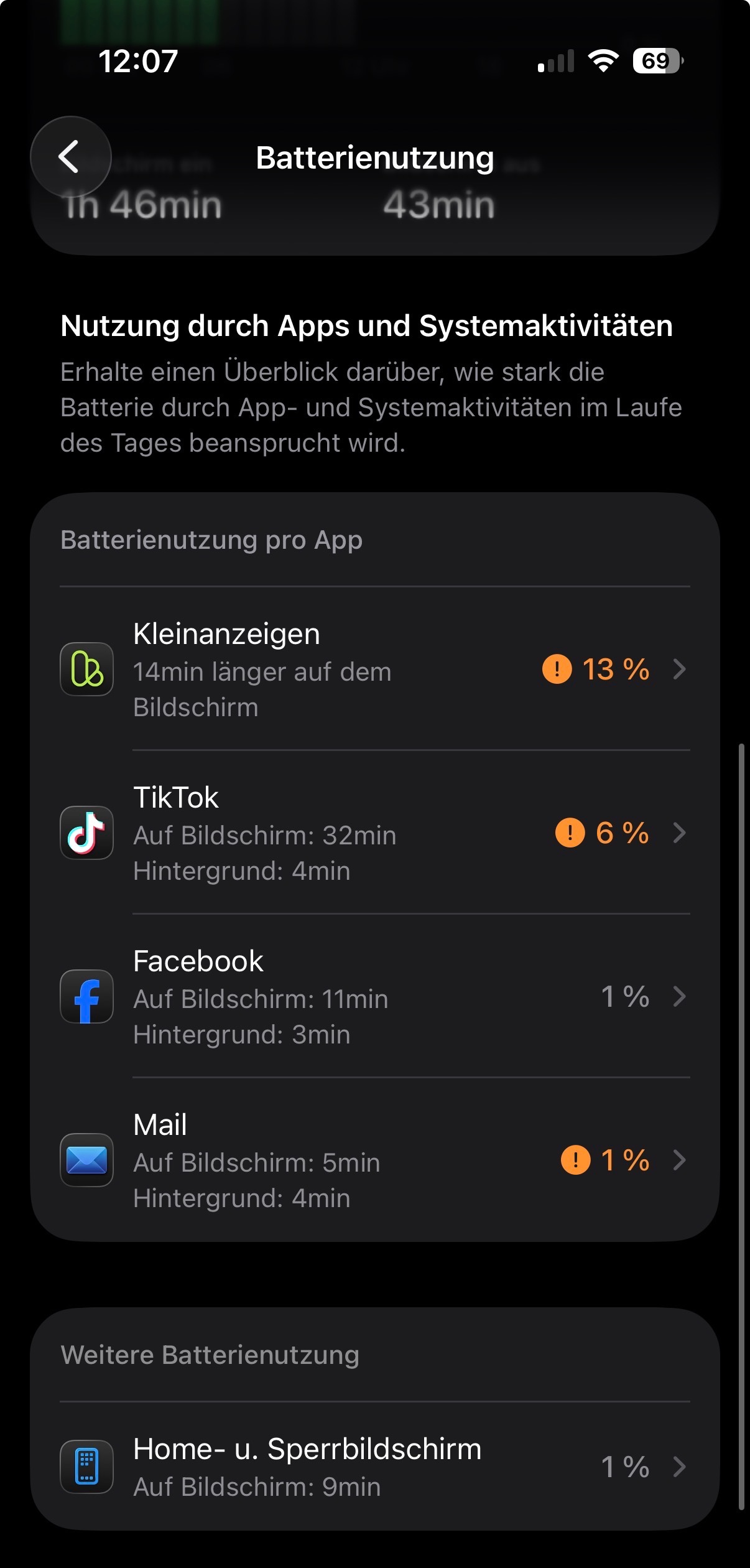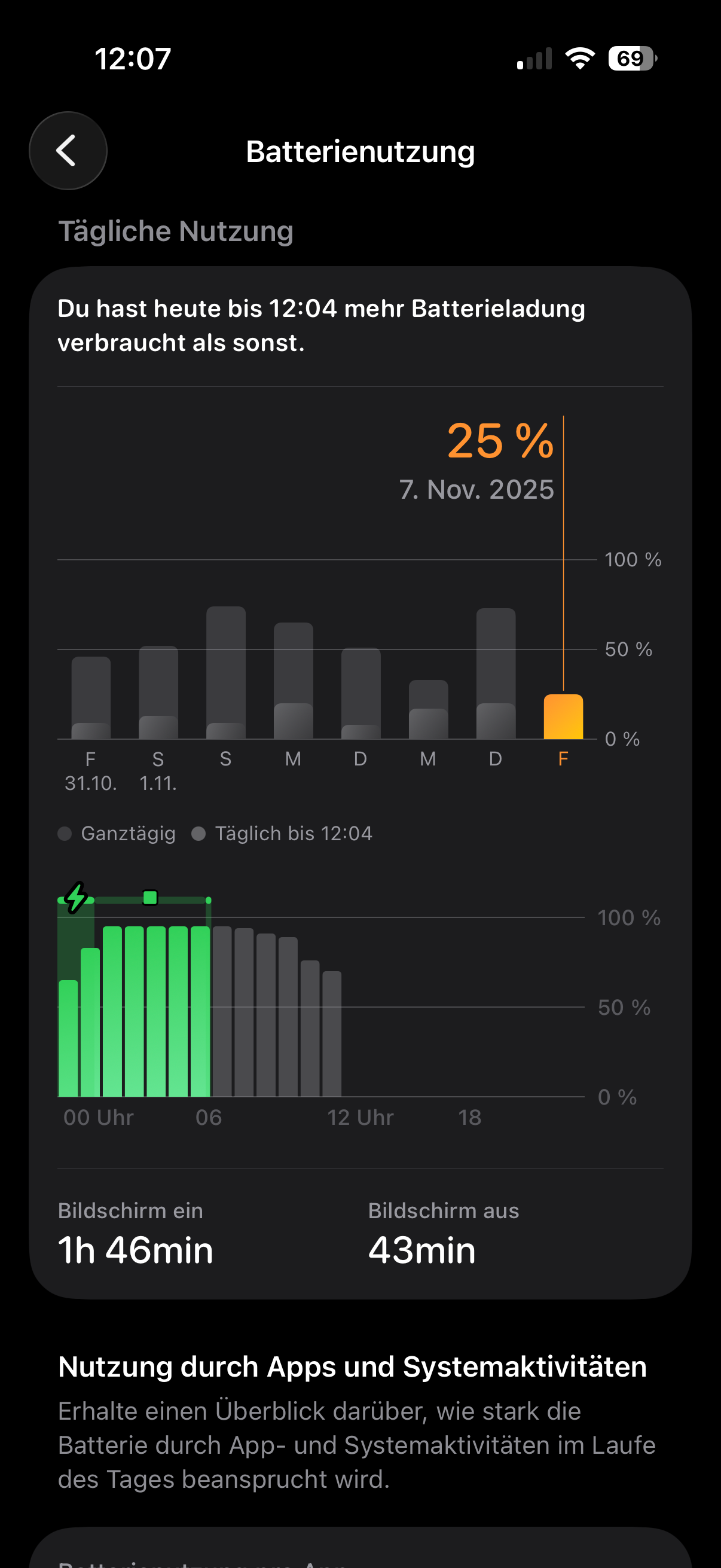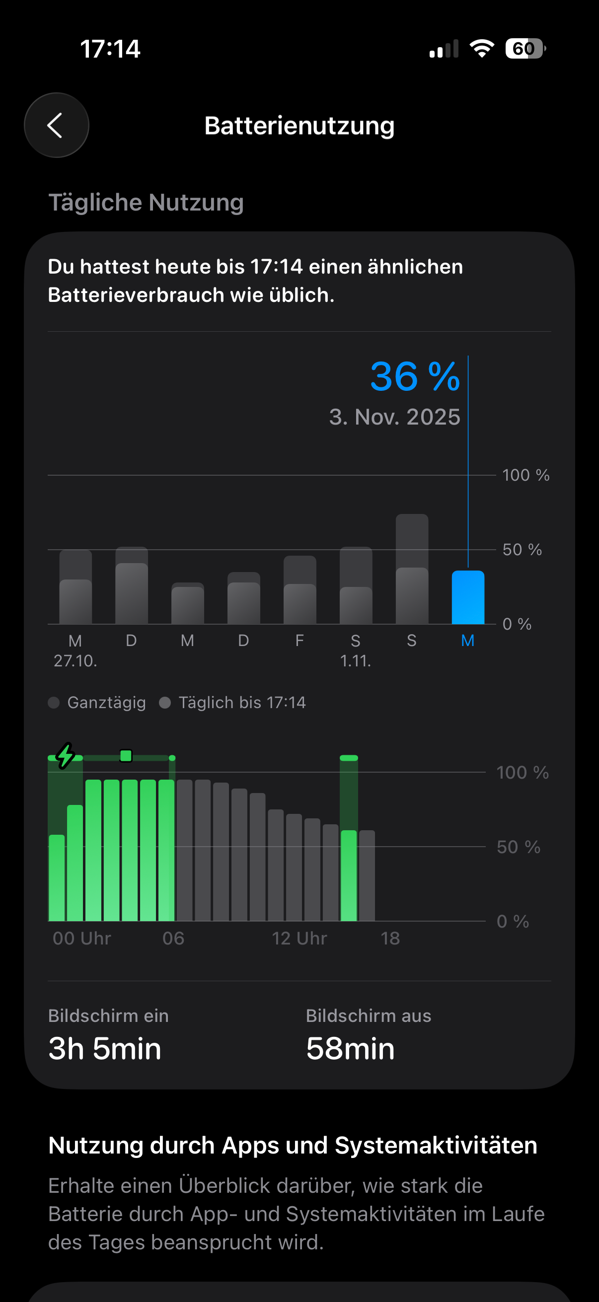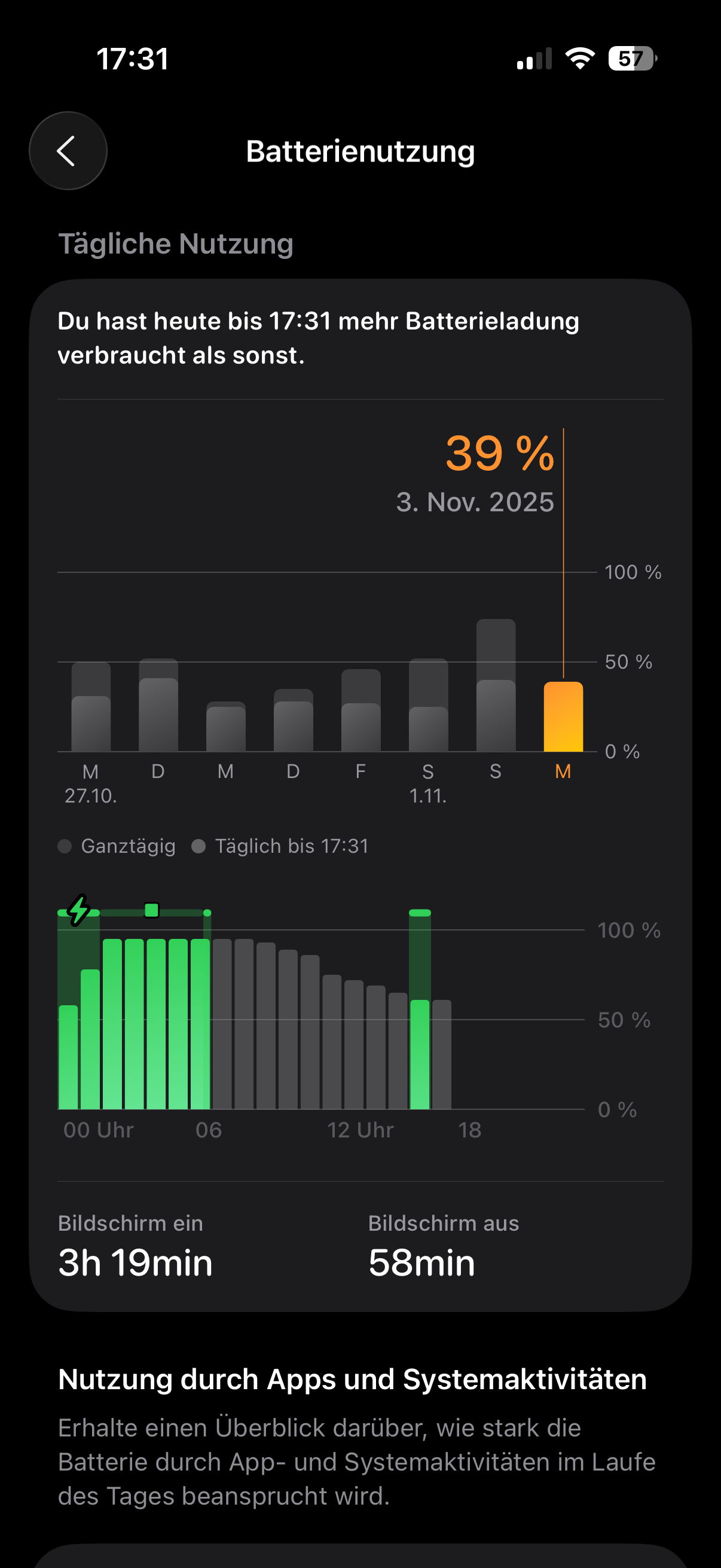 Ich habe das empfinden das sich der Akku meines iPhone 17 Pro super schnell entleert. Ich habe schon alle Einstellungen bezüglich Akkusparen eingestellt, diese hatte ich auch schon bei meinem 16 Pro. Anbei ein Foto meines Verbrauches, wie seht ihr das?
