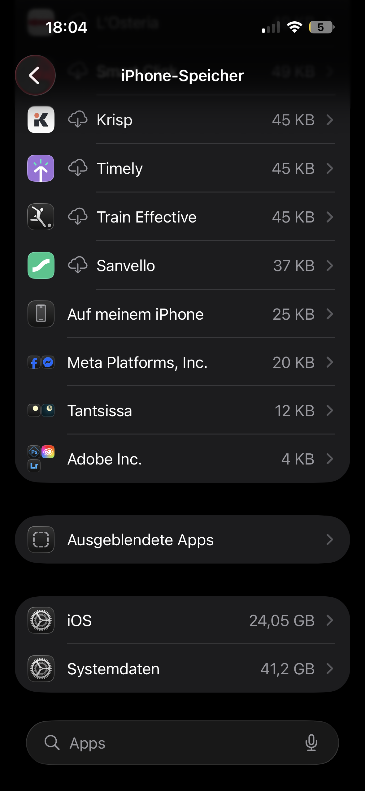 Das neue iPhone kam dann sehr schnell an die Grenze seines Speicherplatzes, so dass ich einige Apps ausgelagert und einige gelöscht habe, mehrfach.