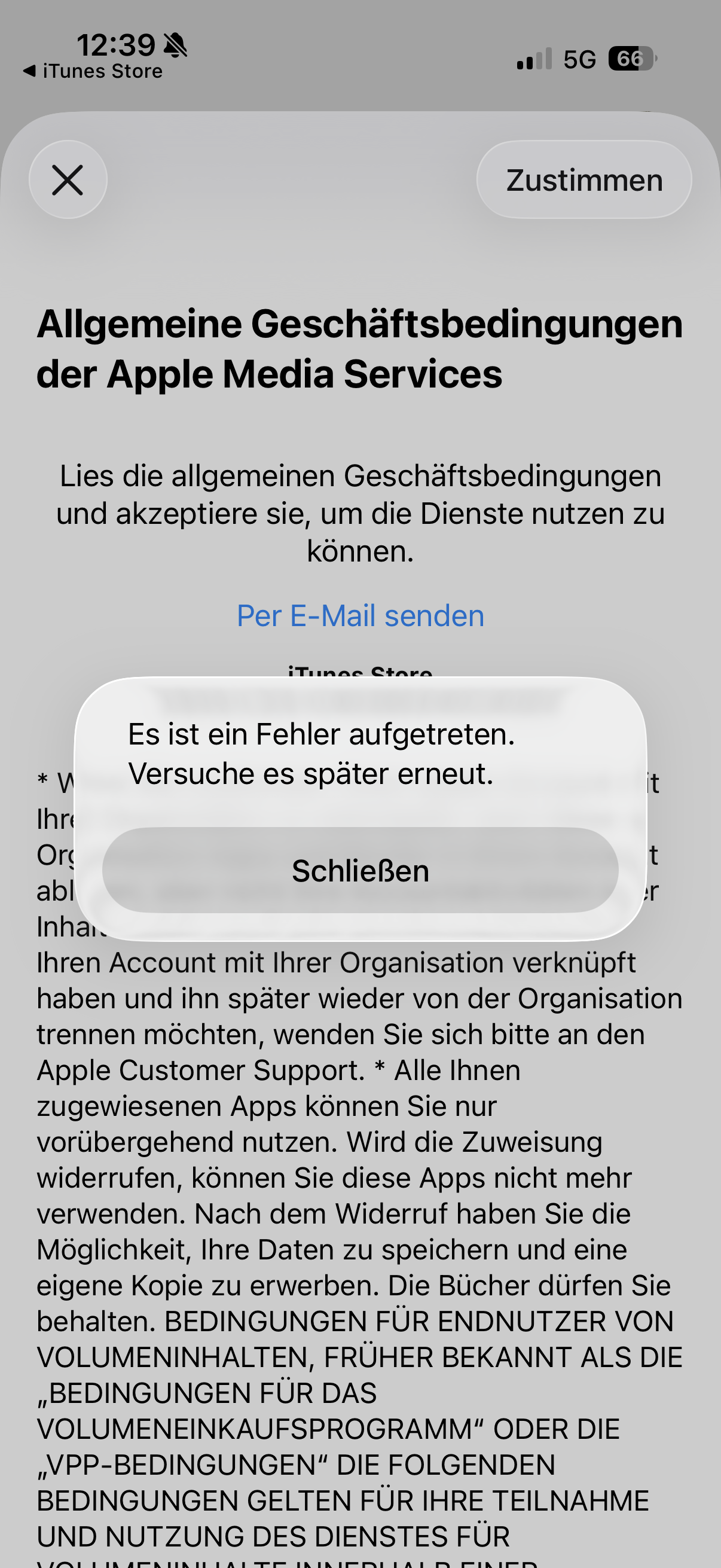 Allgemeine Geschäftsbedingungen der Apple Media Services kann nicht zugestimmt werden