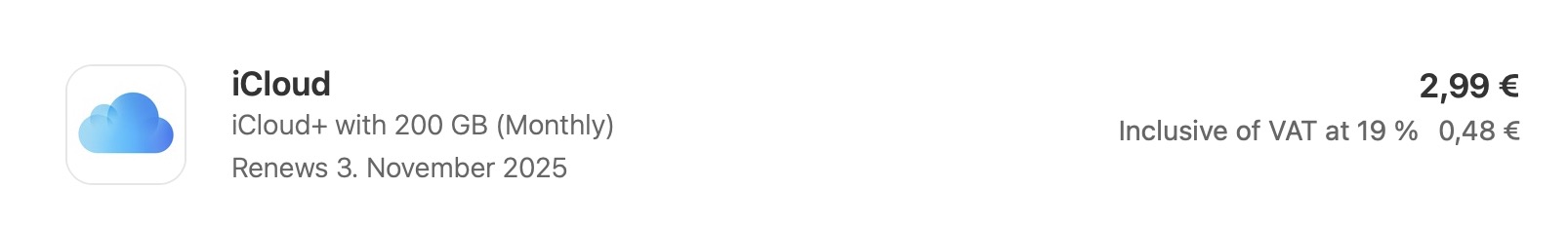 Danke, Christine, die iCloud+ Rechnung war die erste, die ich gefunden habe, als ich in meinen emails nach 3,99€ gesucht habe, einige Rechnungen sind so hoch, inklusive Steuern: