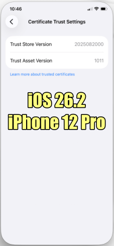 After updated my iPhone 6 to iOS 12.5.6 it still has Trust Store Version 2018121000, Does not have Trust Asset Version