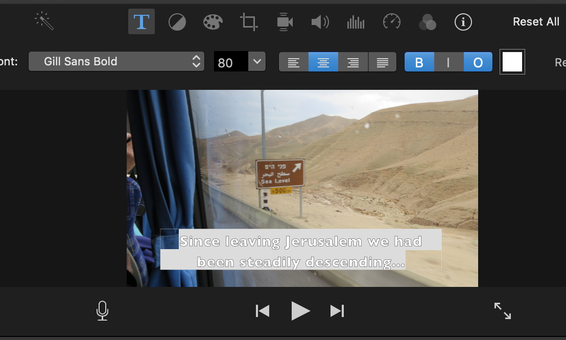 Generally I use either the 'lower' or 'upper' title options with the default Gill Sans Bold and a font size of 80, bold, outlined and in white. This never used to happen and has only begun to occur since accepting the latest update.