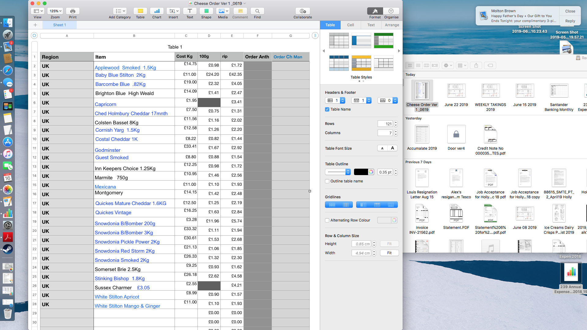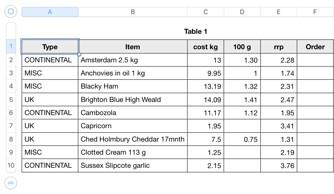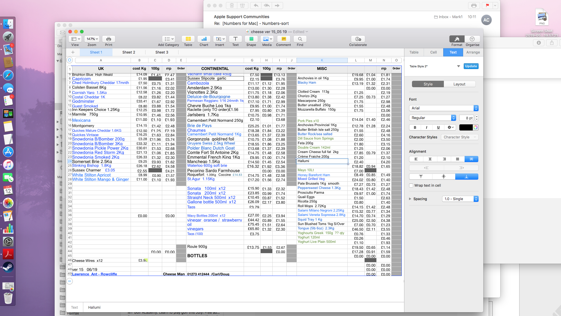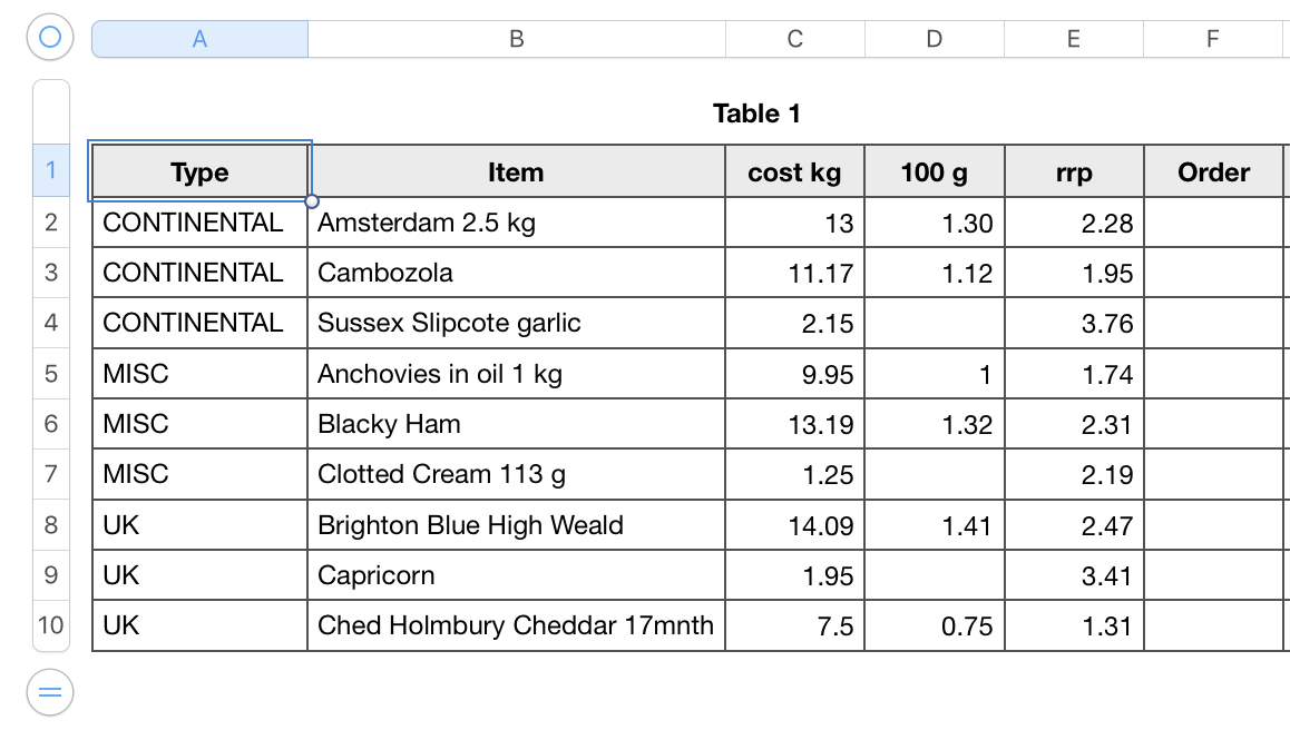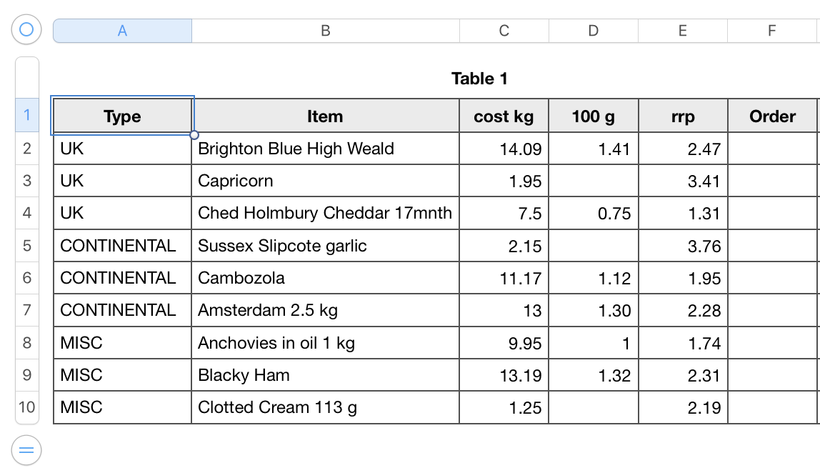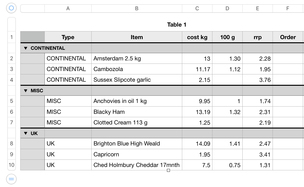 Hi Ian. Thank you for your assistance. Briefly, this form is not for customers, simply my referral/ordering form to make my orders to various suppliers via phone as i each day run down on supplies. I use the three headings to cut to the chase on UK cheese then Continental and then Misc for small retail purchases and Dairy. I have used this form (of mine) for ten yrs plus. The only problem now it seems is when i add or delete items they become out of alphabetically order therefore, a Sort is needed and there lies the problem. When i Sort one Heading the others all change too!