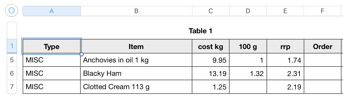 P.S. Numbers does not have "Print Selection". That is why we must use separate tables on separate Sheets (tabs) and print only the relevant Sheets. Ian.