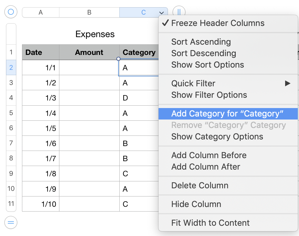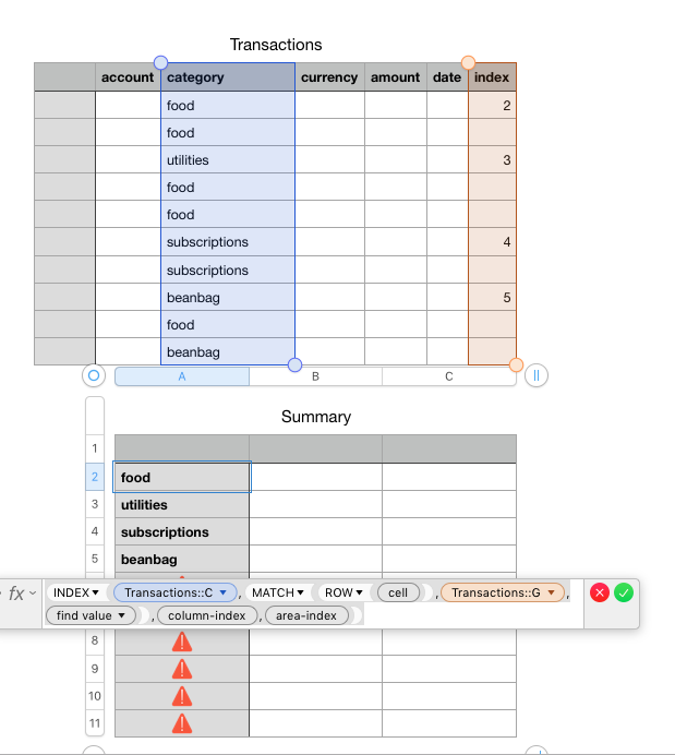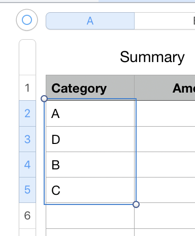 Is there a way to automatically list and update all items from that column in the first sheet, so if I add or remove or rename category, it updates on the summary sheet?