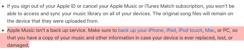 Why did Apple delete ICloud Music Library backup on my IPhone and brand new IPad Pro? I have purchased music for over 15 years and I was told that unless I subscribe to Apple Music, I can't backup my music in the cloud anymore. Why?????????