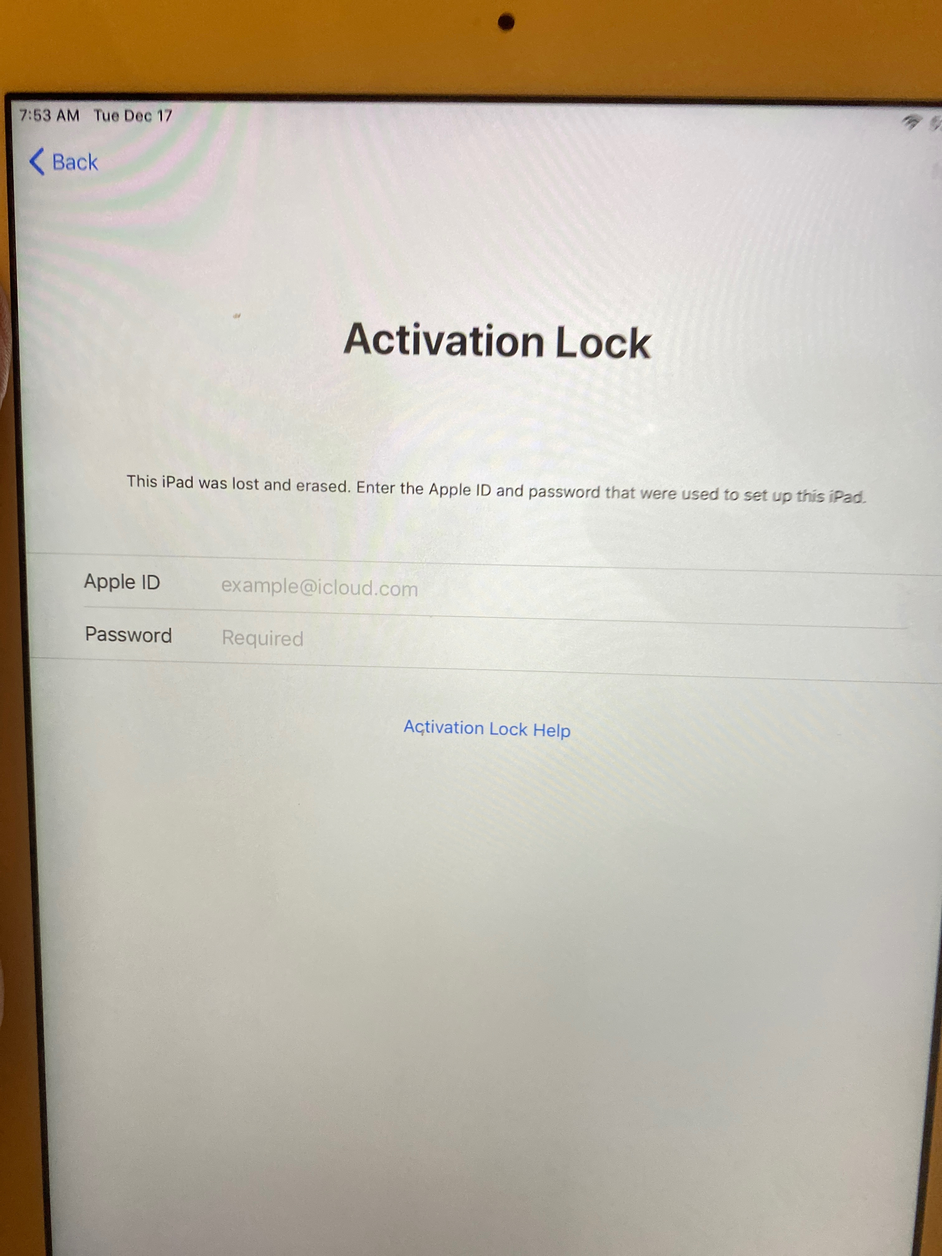 i received a gift and used iPad Air and not sure what iPad Air 1 or 2 anyway, I connected it to the MacBook in order to back it up and restore it to factory settings, and when I followed the instructions and I reset it and update it, an Apple ID and password was required to unlock the iPad.