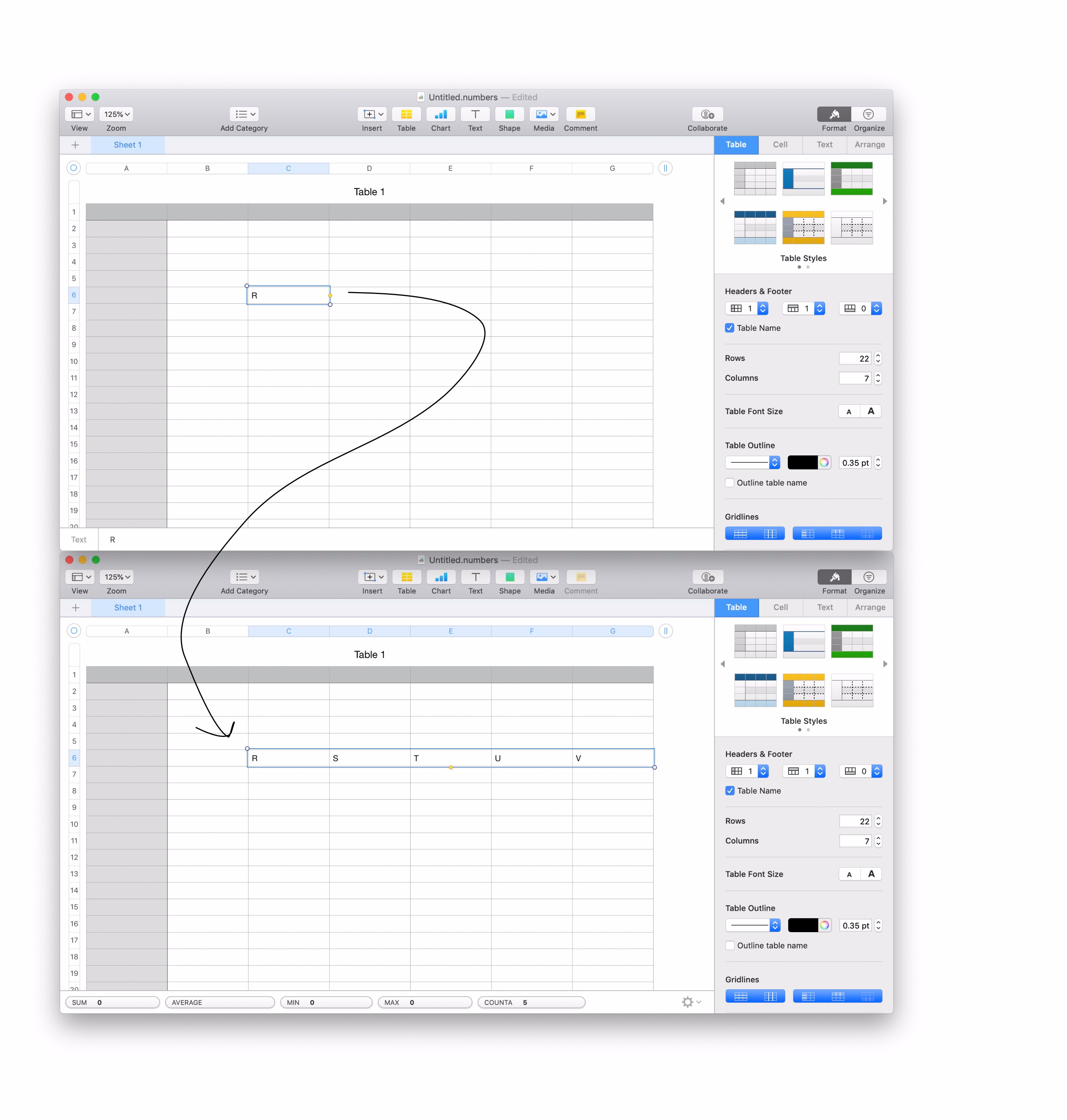 Dragging to copy content from a selected cell to adjacent cells in Numbers defaults to creating a series in the adjacent cells if the original selected cell contains only one letter. How do I just copy?