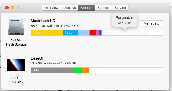 13" MacBook Air, Sierra, 128GB SSD. Desktop's MacHD Icon shows 55-58GB free drive space. But when I download just a 5GB file, icon shows only about 16GB free.