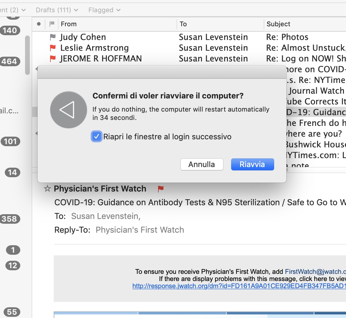 "Wrong language at times on my MacBook Pro: Here's a screenshot of what I saw when I wanted to reboot for some reason. This is typical."