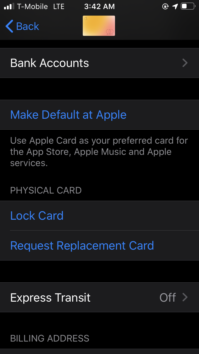 I am trying to set up my Apple Card as my primary payment method for the App Store and any subscriptions on my apple devices within my Apple ID > Payment & Shipping > Payment Methods. There does not seem to be any way to do so. I have tried—with no success—on my MacBook Pro 15" and my iPhone 6s which are both up to date as of 6/25/20. Please advise!