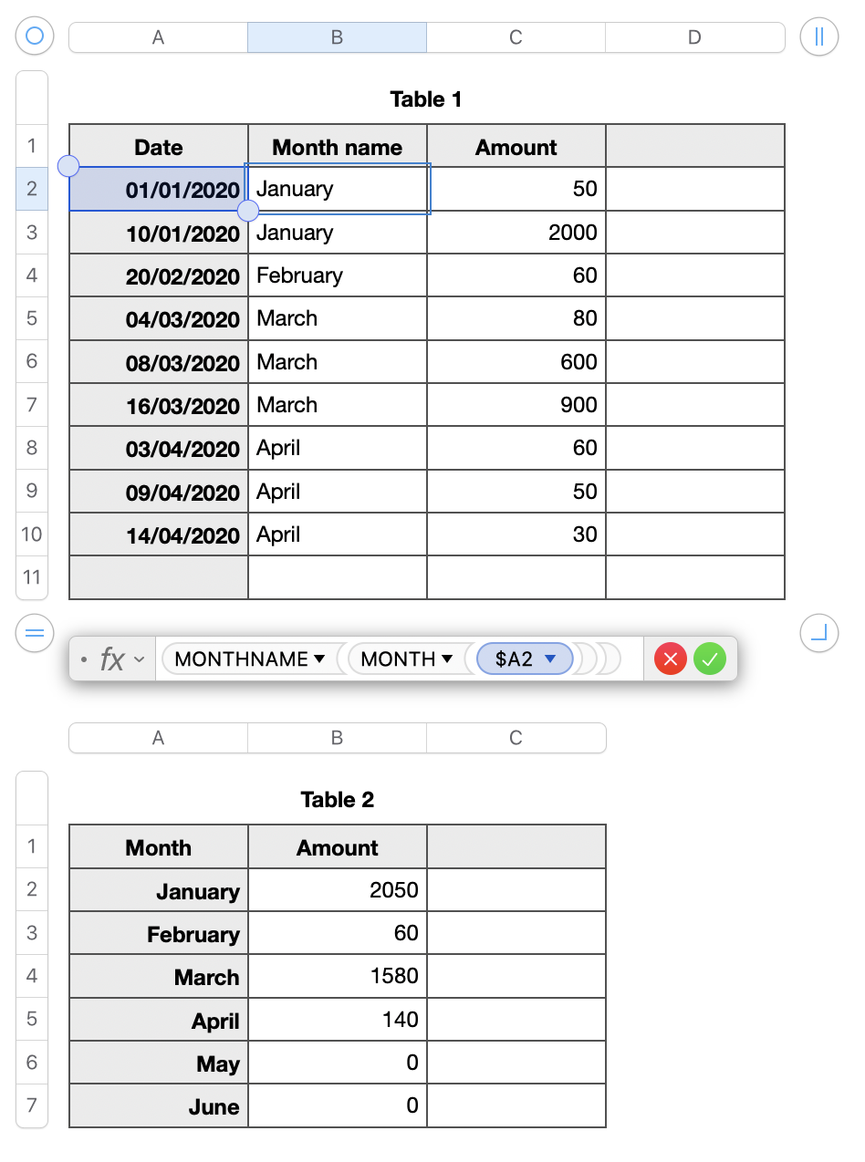 Formula in Table 1 B2 =MONTHNAME(MONTH($A2))