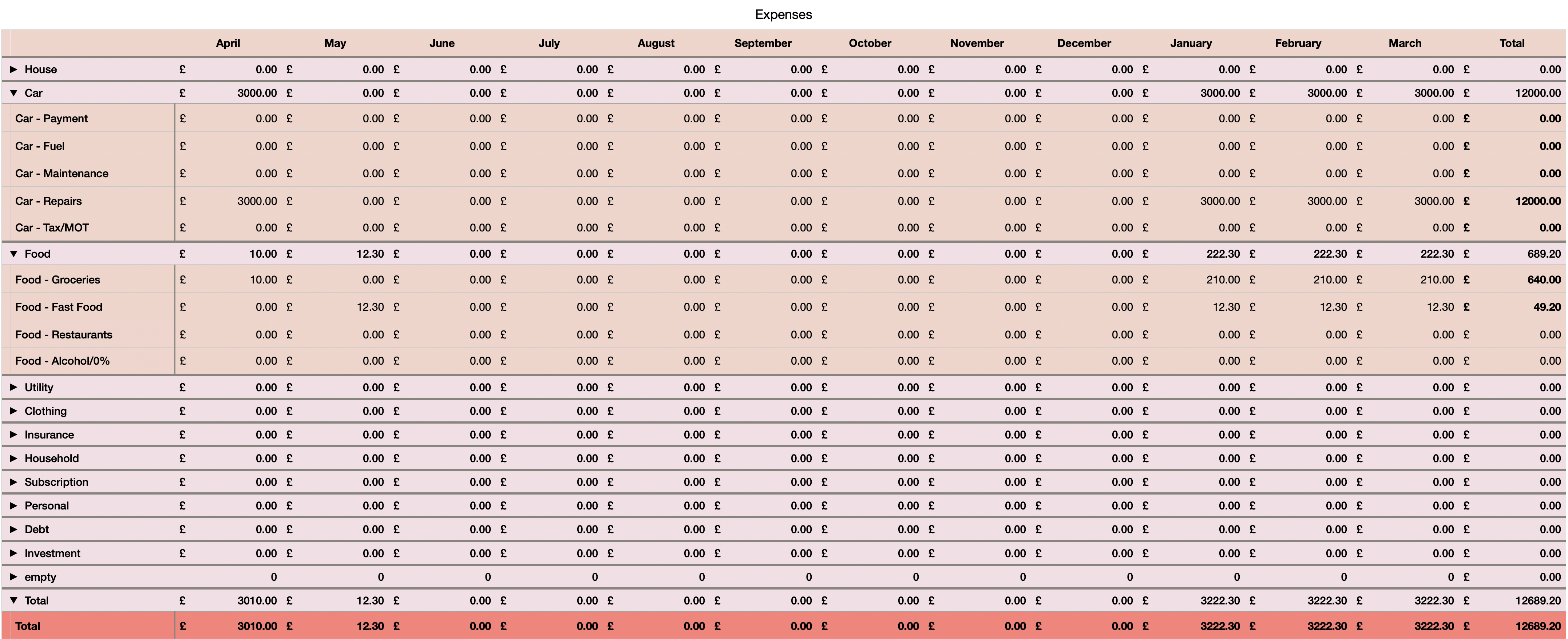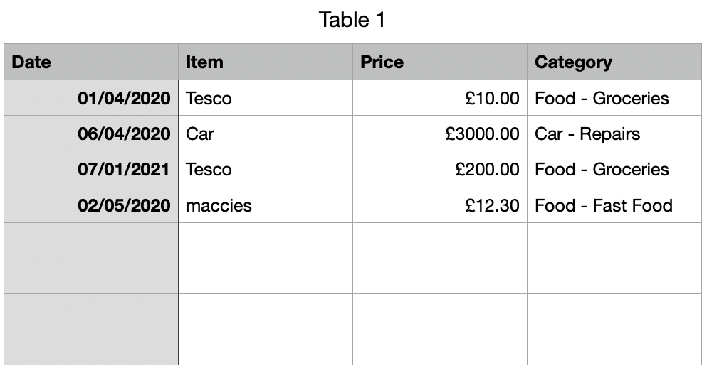 I have 2 tables, the first, "Expenses" is shown in red