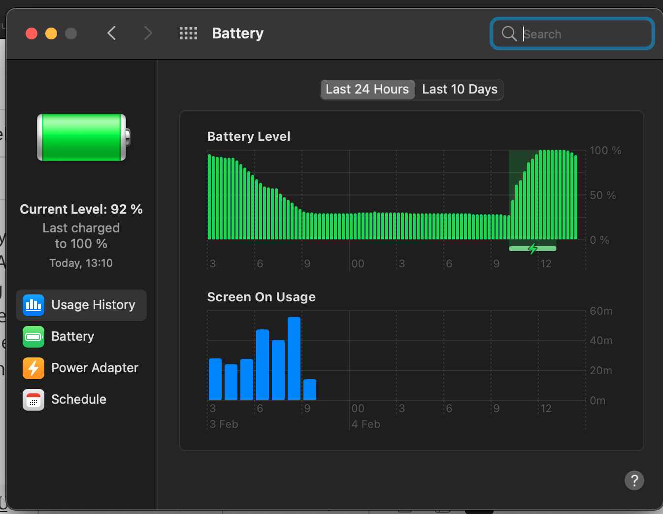 I did notice Strange behavior of the Battery chapter. Usage history.